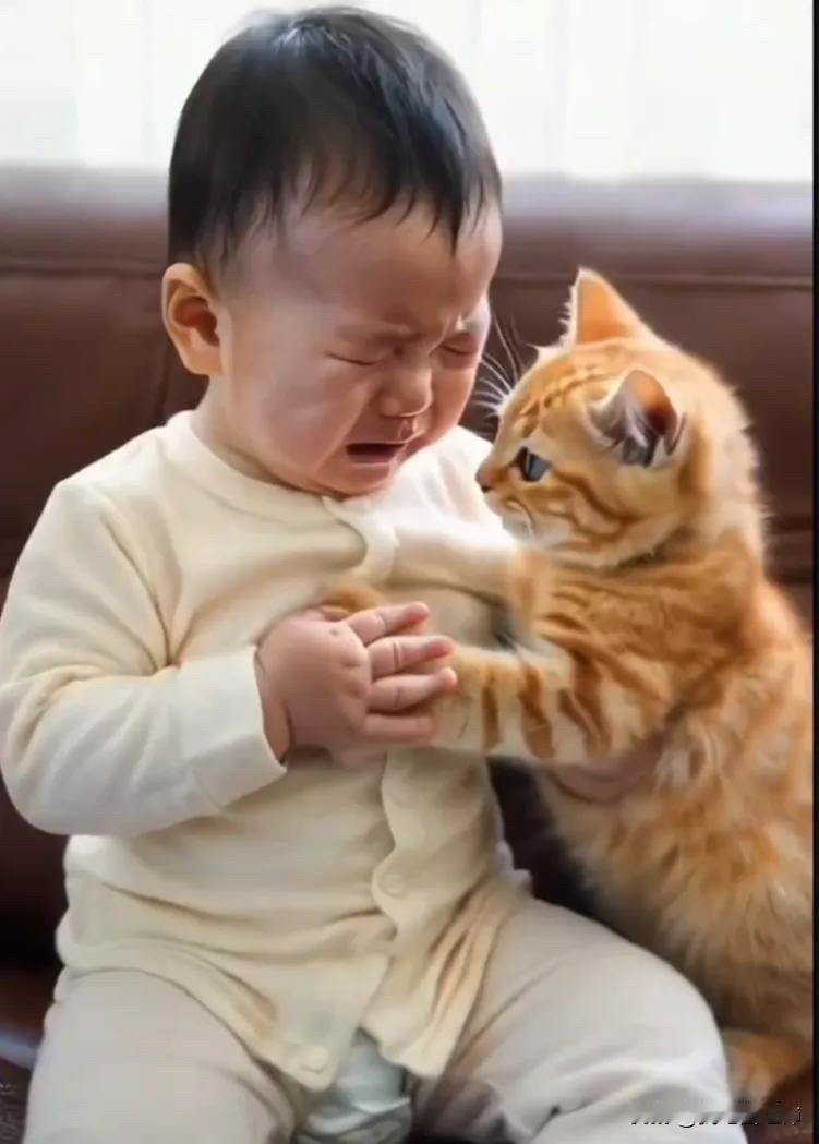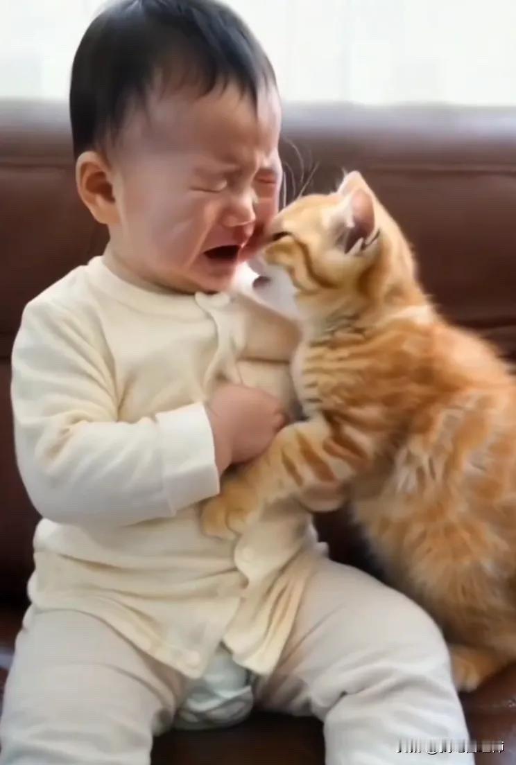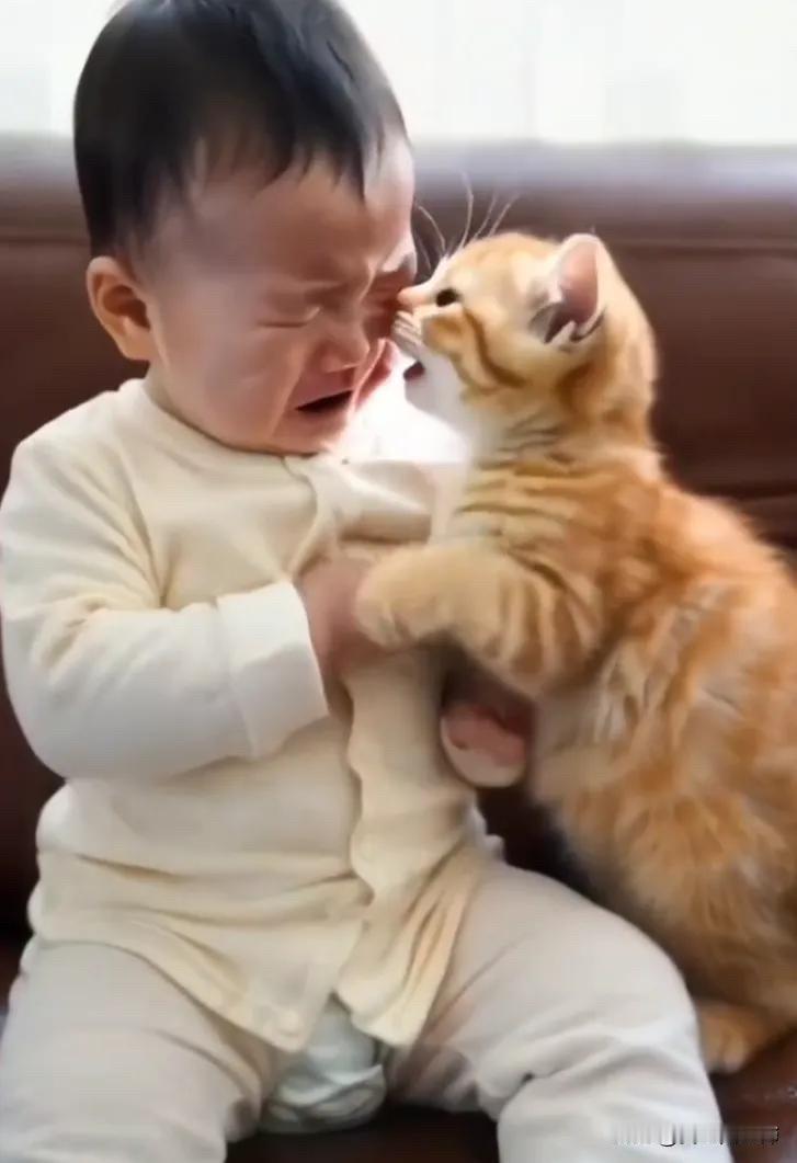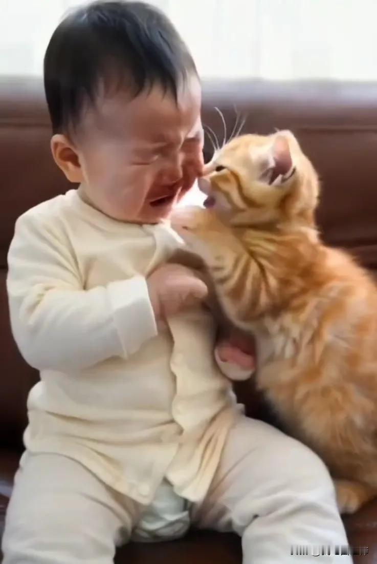 全网都被感动了。主人一家都出去干活了,把小宝宝独自留在家中。小宝宝当时正在睡觉,当他睡醒之后却发现家里一个人也没有了。宝宝以为所有的人都不要自己了,竟然委屈地哇哇大哭起来,哭得很伤心。而这个时候家里的小猫咪的做法呀,让所有的人都泪奔。小猫咪听到小宝宝哭泣之后,在第一时间赶到了小宝宝的面前,不停的去哄他,而且还在安慰小宝宝。它用自己的爪子搂着小宝宝,似乎是在说:“宝宝别哭,宝宝别怕,我在呢,我在家里陪着你呢,不要害怕,爸爸妈妈一会就回来了。”小猫咪看小宝宝还在哭,竟然搂着小宝宝亲了起来,而且还在为小宝宝擦去眼泪。看到小猫咪的做法真的是让人特别的暖心。主人说当他回来的时候,发现小猫咪啊已经把小宝宝给哄好了,而且小宝宝和小猫咪在一块玩得还很开心。看到这一幕,主人感觉既心酸又心疼,而且还带着一丝丝温暖。心酸是感觉自己要出去干活,没办法把孩子时时刻刻带在身边。心疼是看到宝宝在家独自和小猫咪一起玩,让人乖乖的,让人心疼。感觉一丝温暖是感觉小猫咪竟然能够代替他们哄小宝宝开心,让人特别的暖心。