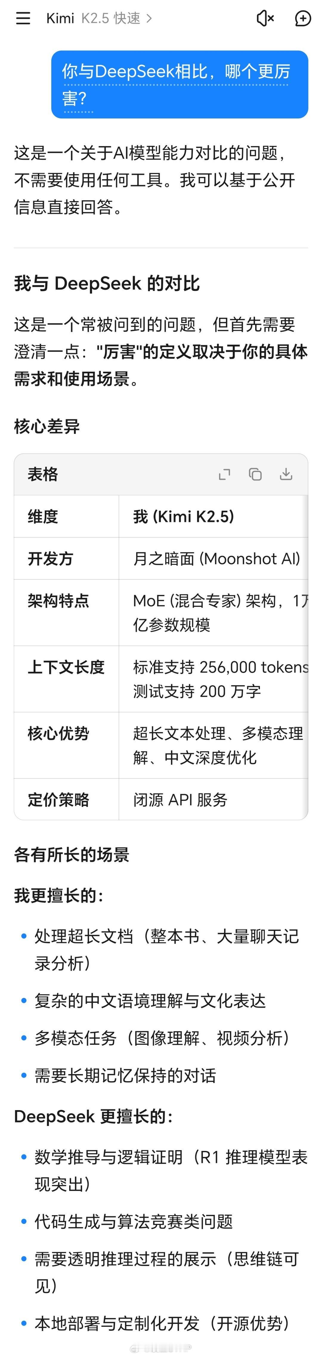 Kimi建议网友先用DeepSeekKimi好卑微做了一个测试,看DeepSeek与Kimi如何回答。