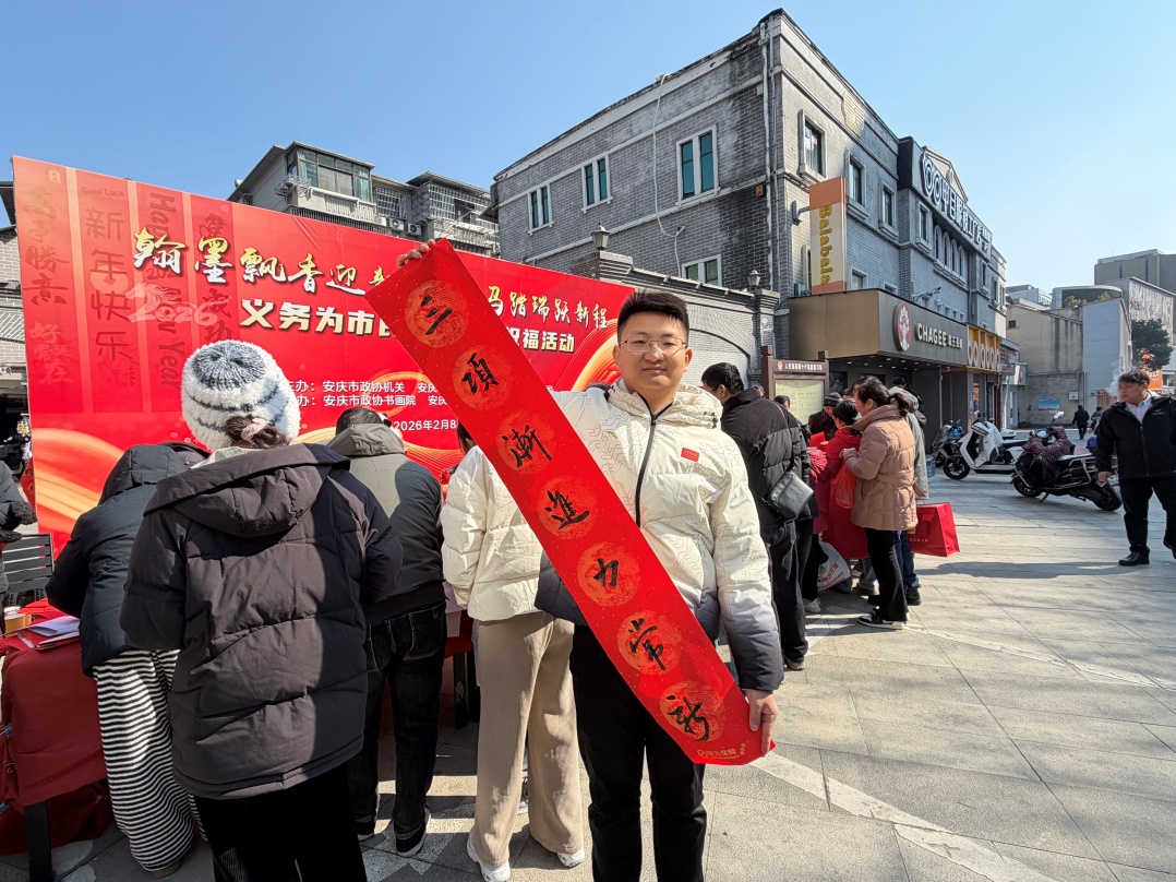 “过年还是坚持贴手写的,比印刷的春联更有味道。我自己毛笔字写得不好,在书店这边能领到书法家们现场写的,有年味。”在安庆劝业场店的送春联活动现场,读者们捧着墨迹未干的春联,交口称赞书店的活动让年味更浓了。
