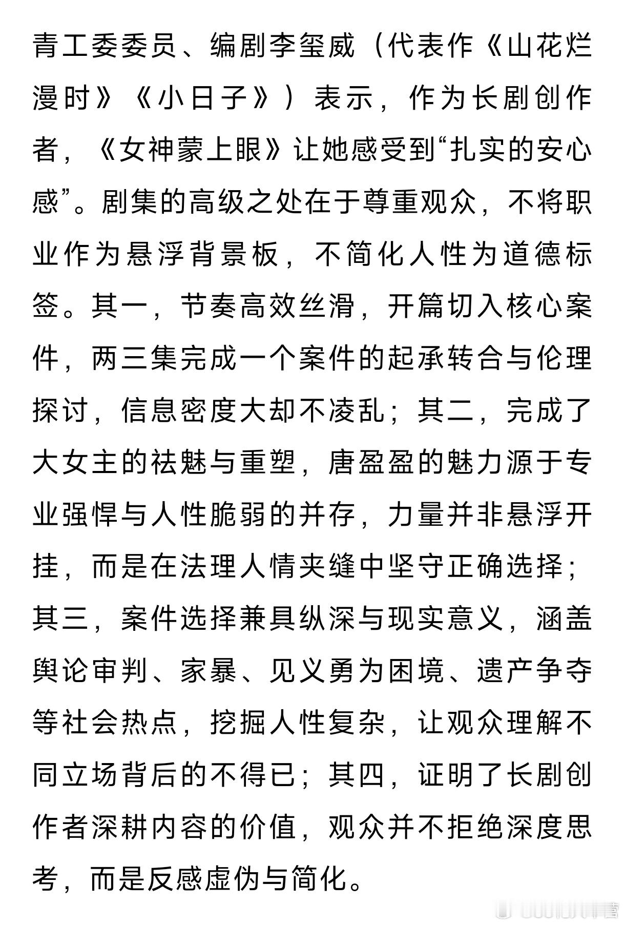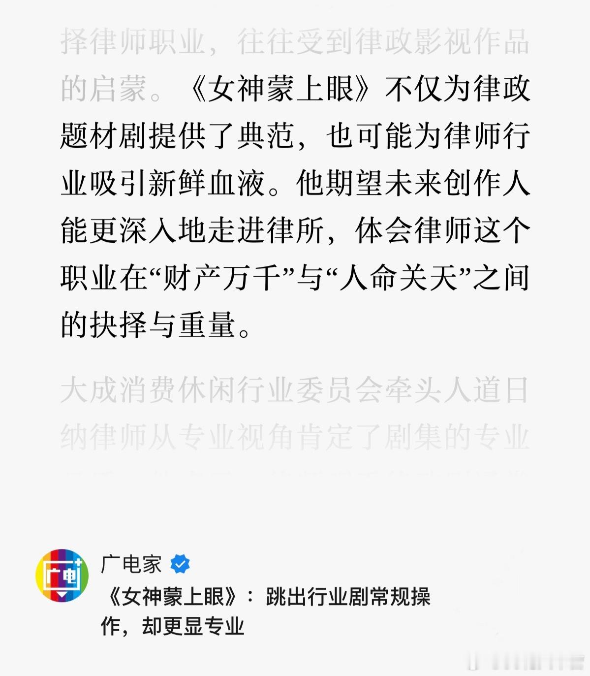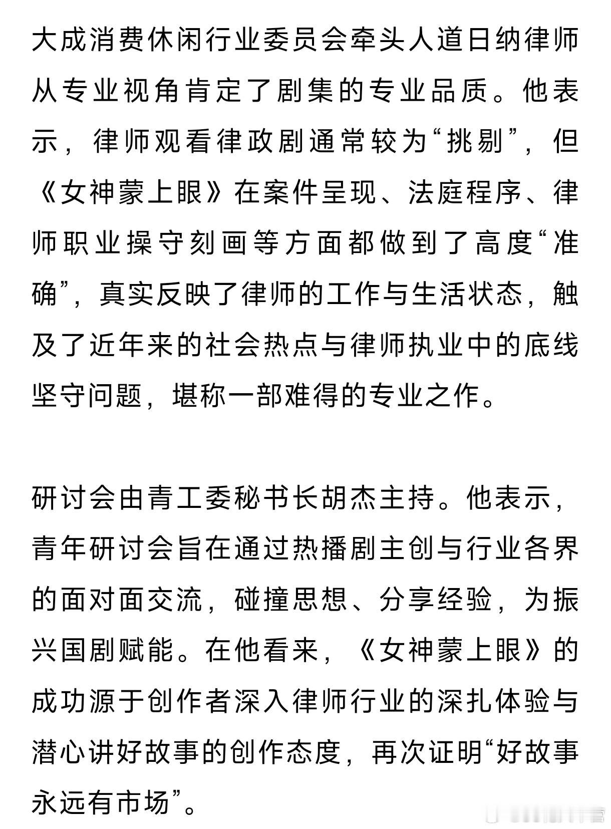 广电家——中视协主办《女神蒙上眼》青年研讨会《女神蒙上眼》:跳出行业剧常规操作,