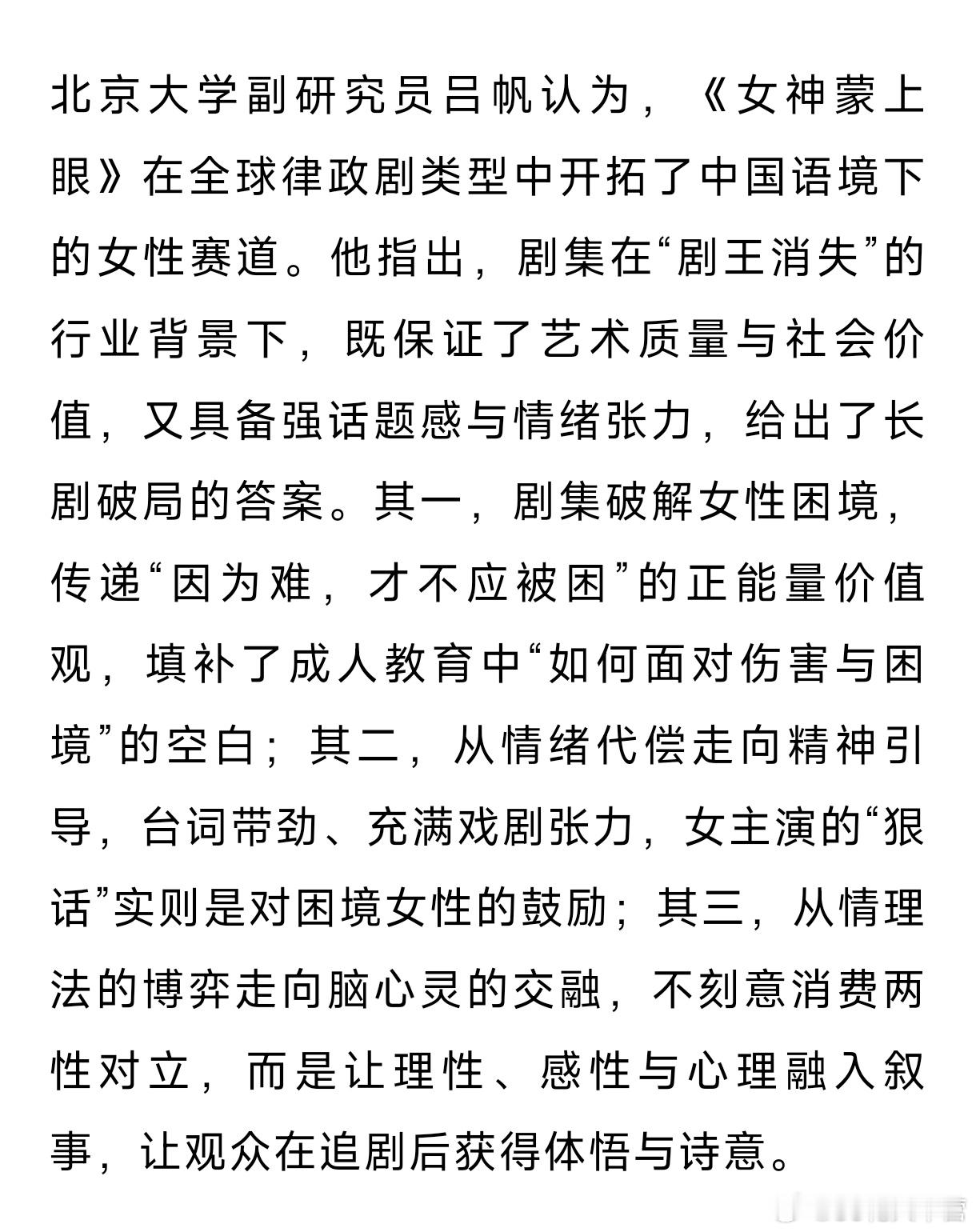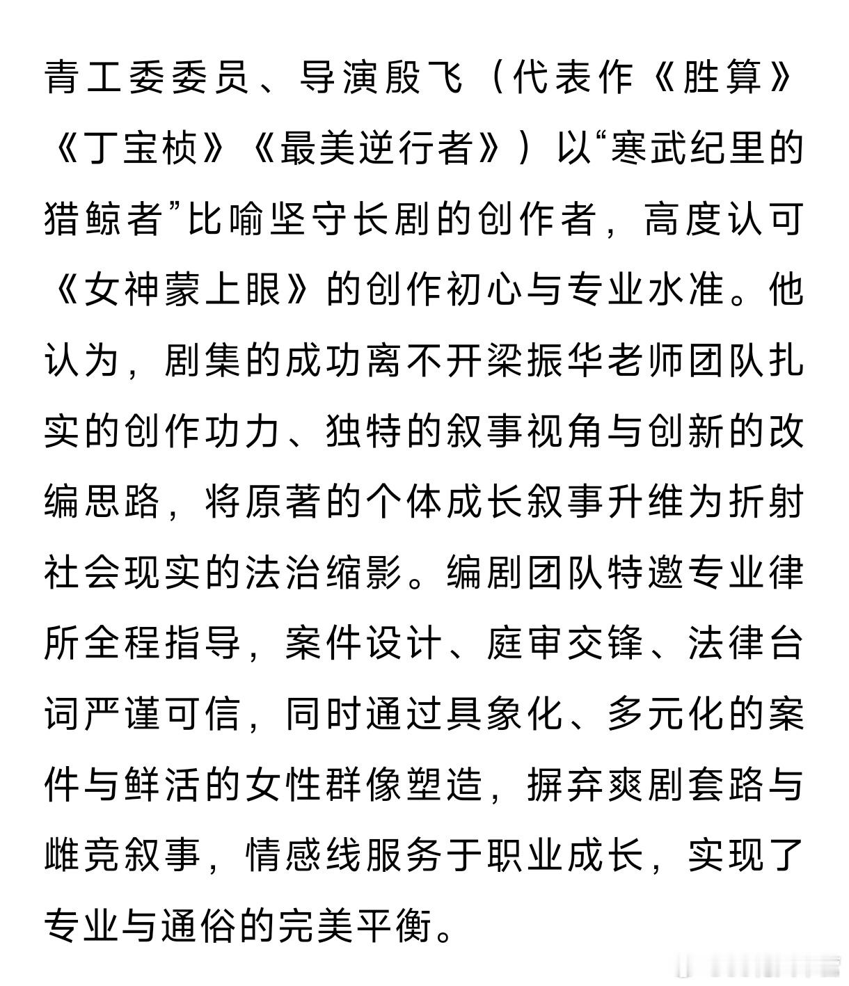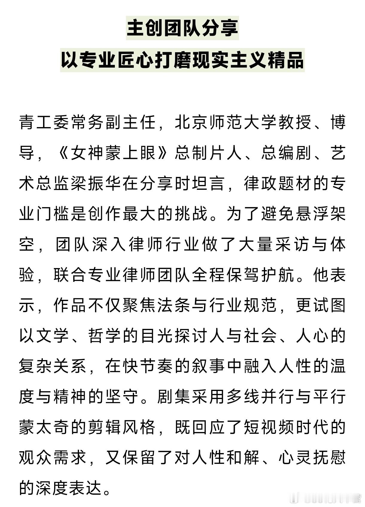 广电家——中视协主办《女神蒙上眼》青年研讨会《女神蒙上眼》:跳出行业剧常规操作,