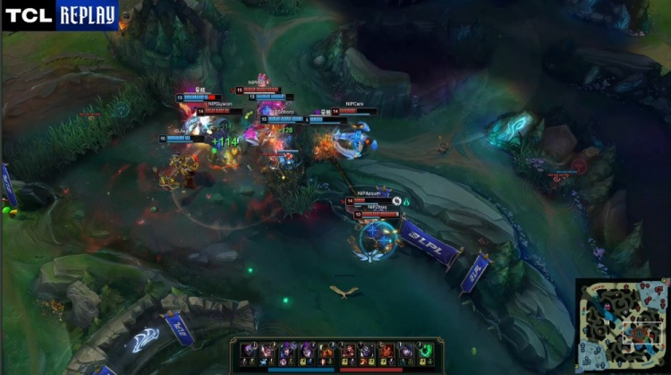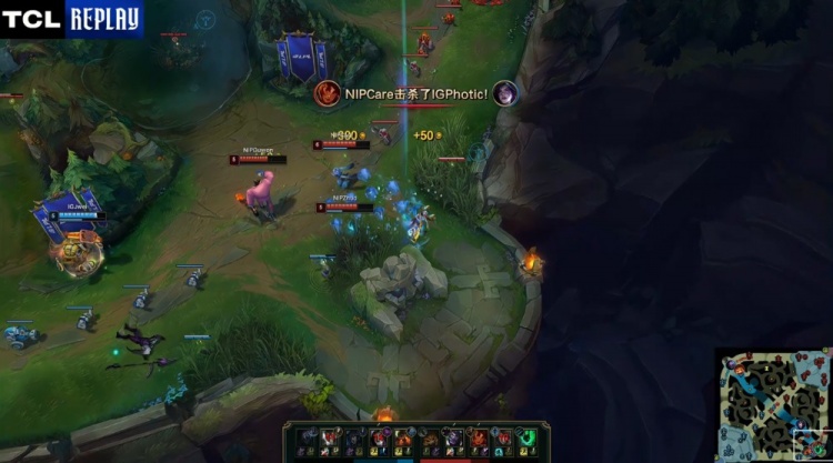 [6:18]下路3v3,Guwon蒙多先杀Wei赵信,Photic卡莎强行换掉Assum厄斐琉斯,Care岩雀来下收到Photic卡莎人头,NIP打出1换2。