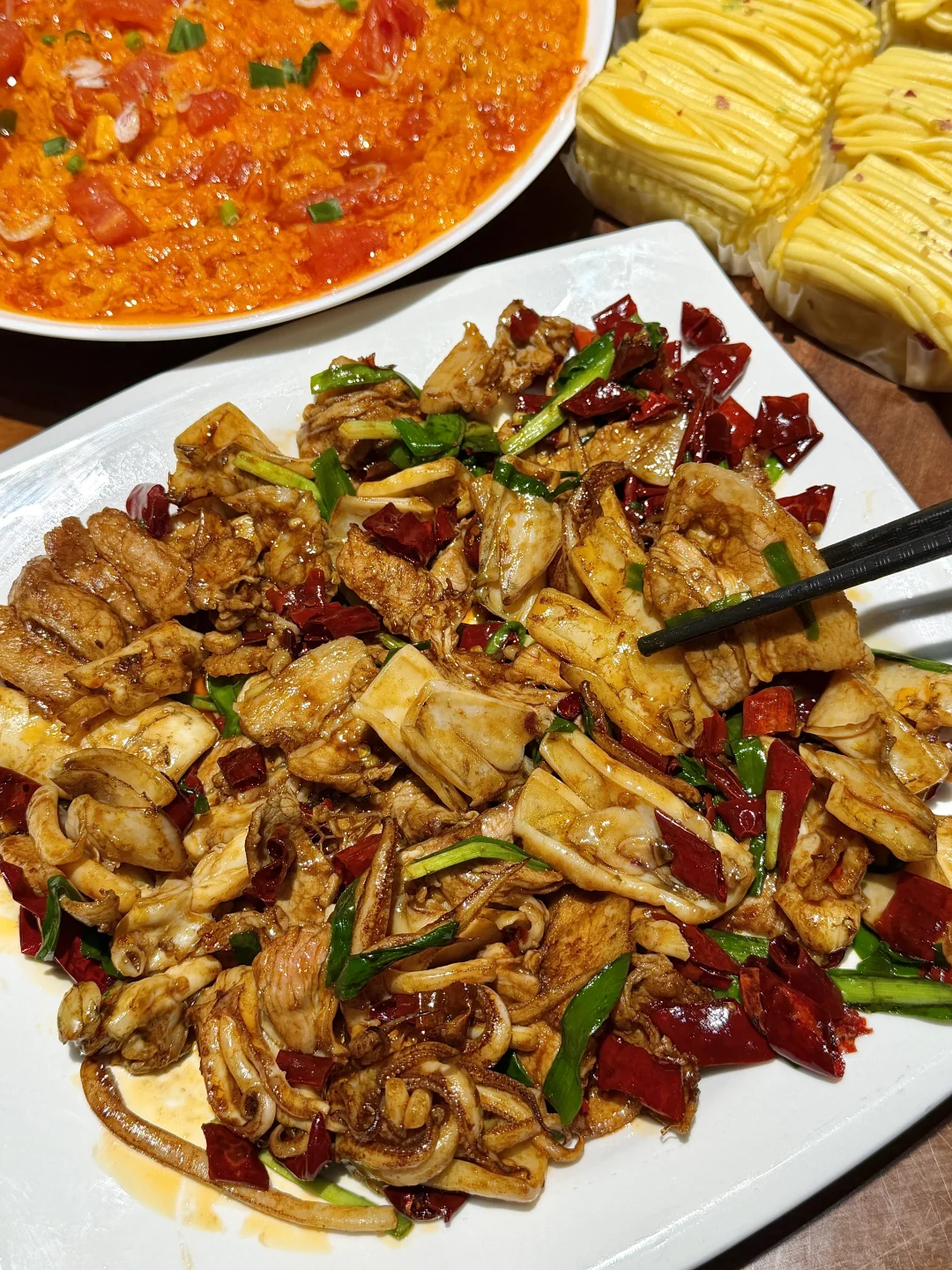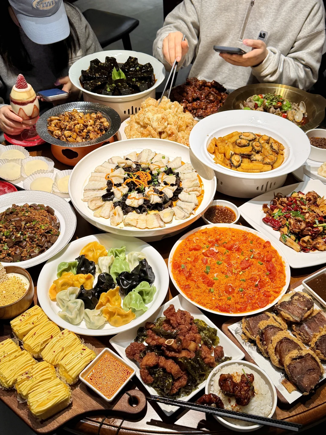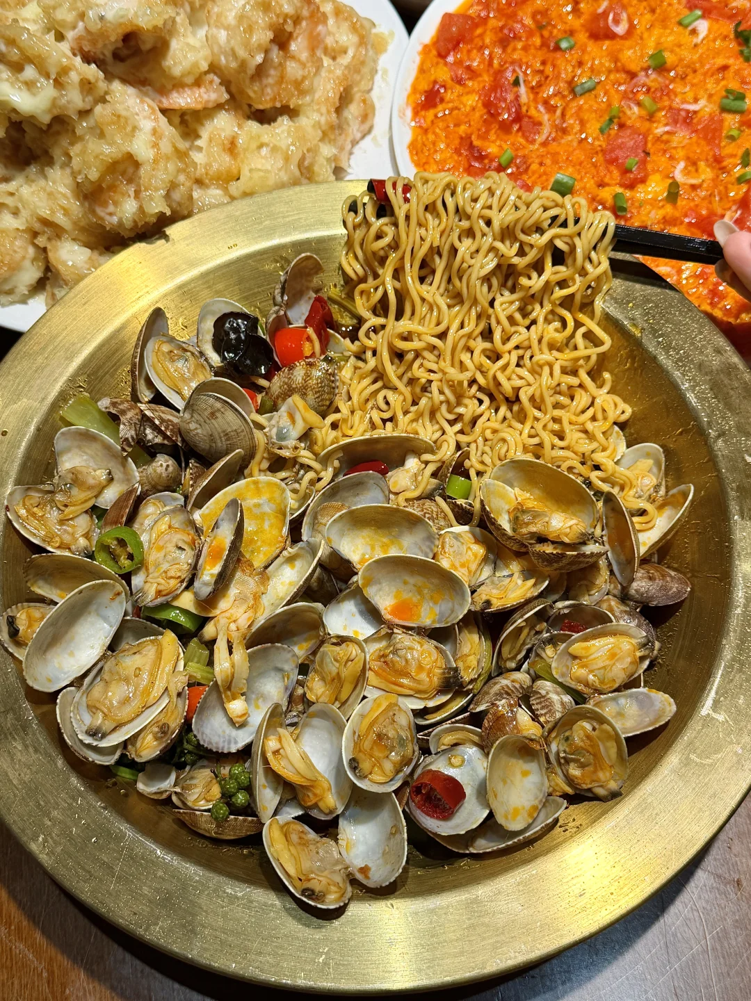 终于没有踩雷了!跟着网友推荐来吃不的会错👍之前就做了攻略发现他家叫📍宴小馆,就在地铁口附近!本地人都会扎堆去的小海鲜+青岛菜~果然名不虚传!还顺路逛五四广场、奥帆中心 服了!怎么会有这么好吃的茶香肉啊!份量好足很有锅气~配青岛招牌崂山茶叶一点不腻!!我们一人一筷子火速吃完了。 还有花甲拌面真心要推荐,基本是本地回头客坠爱!芥末虾球又大又入味!全家福水饺也是正宗青岛味!吃完记得再来点漂亮甜品🥹🥹黄油烤面包奶嚼口、草莓芭菲杯、还有桂花软酪大福软糯香甜好幸福啊