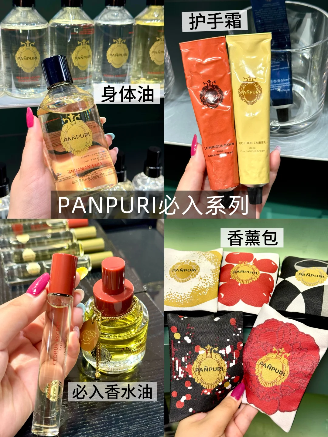 泰国本士高端香氛品牌,PANPURI是让我入坑泰国香氛的第一个品牌‼️他家的身体油/香氛/香薰蜡烛/护手霜都超级有名‼️尤其安达曼海和天月桂花香味特别出圈 推荐整套入手‼️最近还有新出的新年节日礼盒,各种搭配和size都有‼️性价比和颜值都很高 作为伴手礼送人再合适不过啦‼️