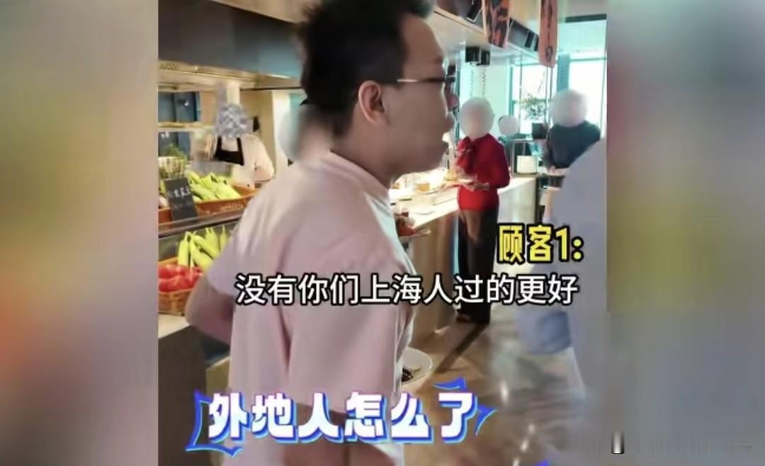探店博主吃上海五星自助,竟被本地大妈赶,经理还护短 有个叫老高的探店博主,自个儿掏钱去上海一家五星级酒店吃自助餐。本来想着能美美搓一顿,结果事儿可多了! 先说这大闸蟹,宣传说不限量,结果每人一次只能拿两只,拿一次还得排半小时队,这不是逗人玩吗? 还有羊排和生蚝堆一块儿,厨师说拿生蚝得排队,拿羊排直接拿就行。老高就听厨师的,绕开生蚝队去拿羊排,结果有个本地大妈不乐意了,大喊“别插队”,还说“在上海就得守上海人的规矩,没你们外地人更好”。老高就纳闷了,我这是按规矩来的,咋就插队了? 酒店的处理方式也离谱,员工就站旁边看热闹,经理也是等老高发火了才慢悠悠过来,还说老高是做自媒体的,录视频得先跟公关报备,从头到尾也没解决啥问题。 这事你怎么看?
