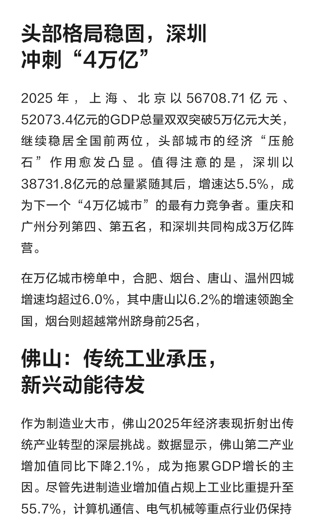 佛山22位!下降2位!2025年全国GDP万亿城市
