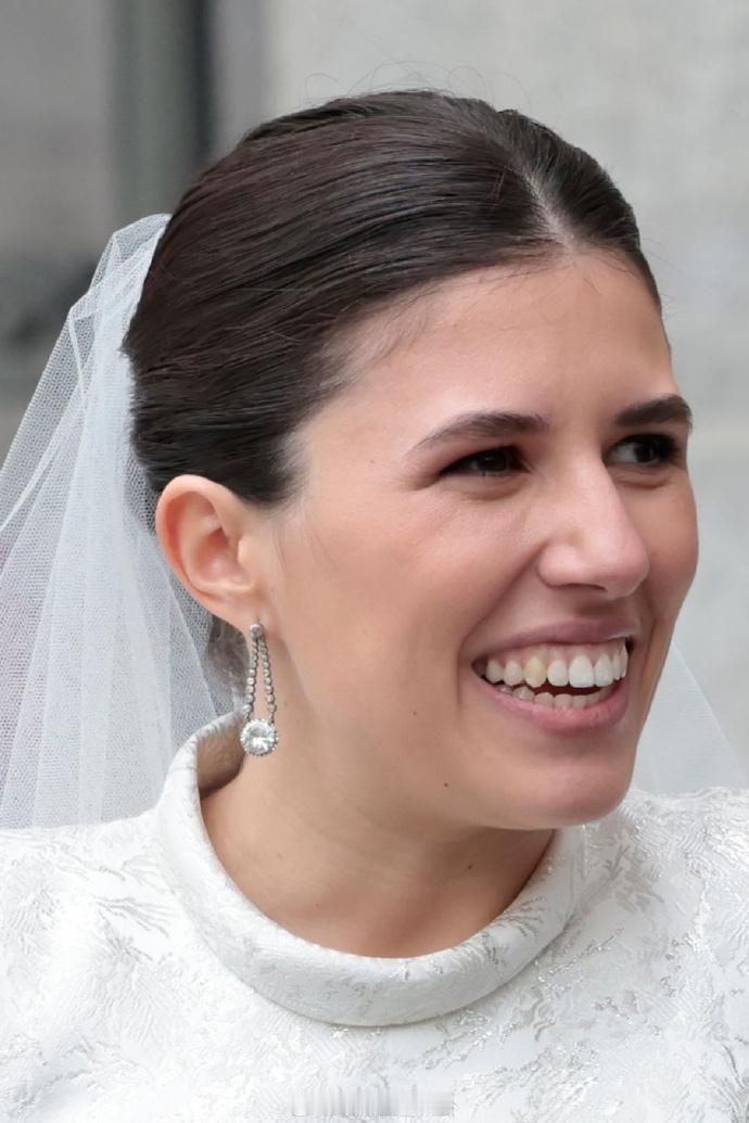 属于波旁-两西西里公主特蕾莎(胡安·卡洛斯国王表姐)的钻石耳环,是她亲妈艾丽西亚结婚礼物的一部分,由尚美设计制作 原本挂着珍珠,后改成了大钻。特蕾莎很早就继承了这对,可见公开场合佩戴仅在80年代和04年,前两年借给了同名外孙女在婚礼上使用 特蕾莎本人和闺女结婚时都戴的红宝石王冠,十来年前套现卖掉了,但即便如此特蕾莎感觉还是不太缺珠宝用,外孙女婚礼上看着挺珠光宝气的