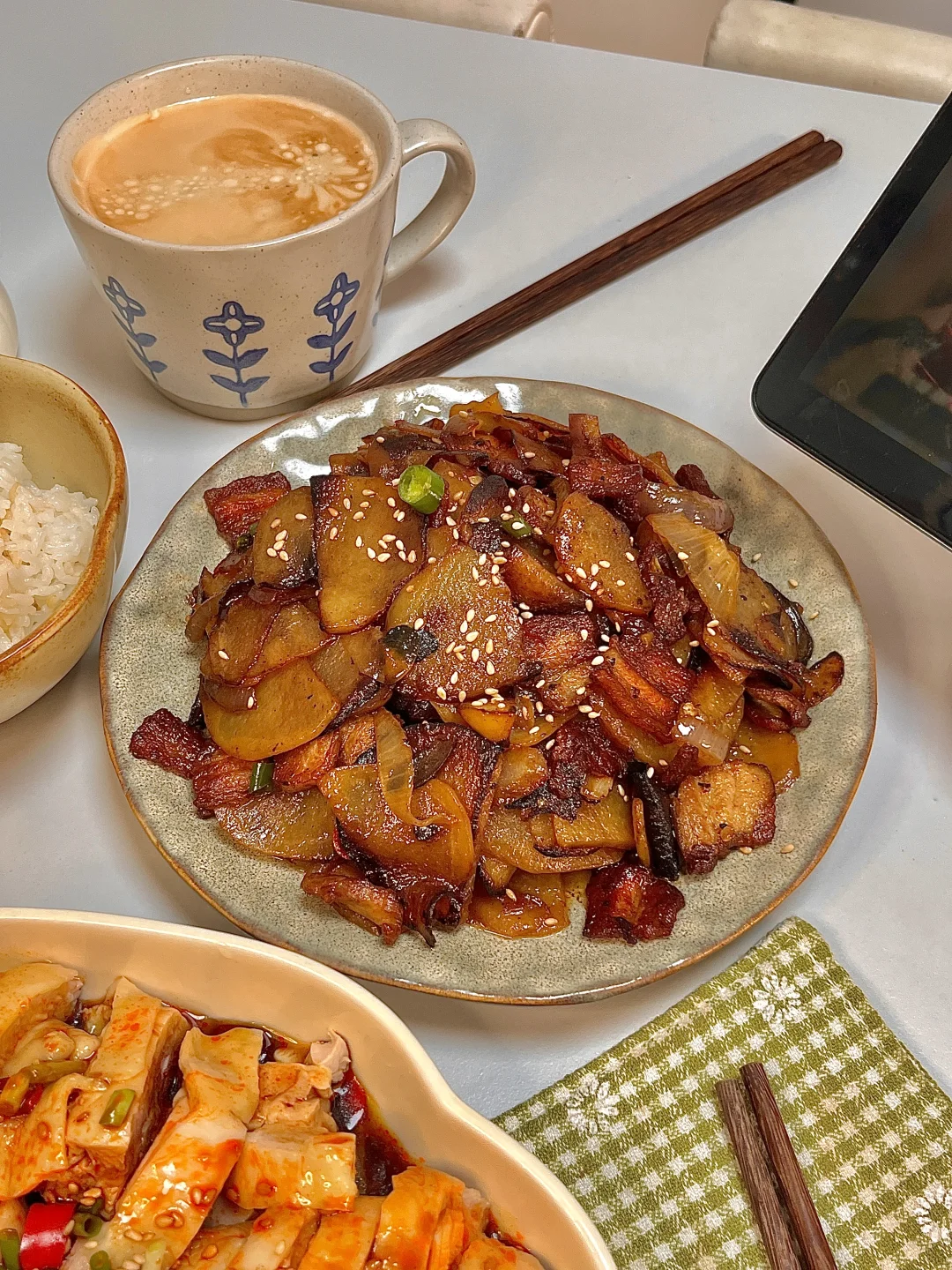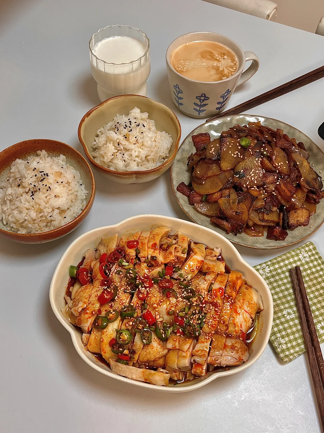 今日份二人食: 凉拌口水鸡 五花肉炒土豆片 . 一定要试试这个口水鸡,麻辣鲜香,超级好吃😋