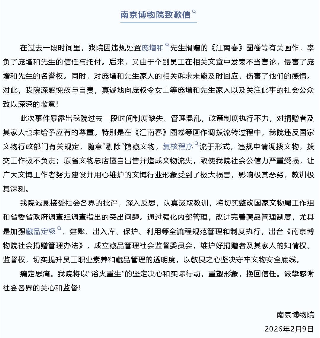 南京博物院的道歉信来了!不过咋没找到评论区呢。