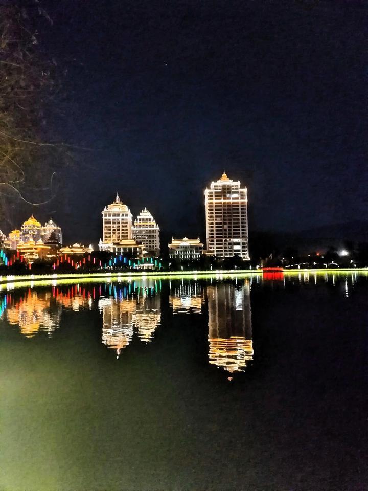 夜幕下的璀璨灯光,倒映在静谧湖面上,宛如梦境。沿着湖边小径漫步,脚下石板路在灯光映照下泛着柔和光泽。偶尔有微风拂过,湖面波光粼粼,那璀璨灯光的倒影也随之摇曳,像是一群灵动的精灵在水中嬉戏。 远处,一座小亭子在灯光环绕下显得格外温馨。走进亭子,能听到湖水轻轻拍打着堤岸的声音,那是大自然与城市灯光交织奏响的夜曲。 湖对岸,彩色的霓虹灯沿着建筑轮廓勾勒出城市的繁华模样。与这宁静的湖面形成了奇妙的对比,却又和谐地融合在一起。 我沉醉在这夜幕下的公园美景中,手中的相机不停按下快门,想要把这如梦如幻的一切都记录下来。这不仅是一场视觉的盛宴,更是心灵的一次短暂栖息。