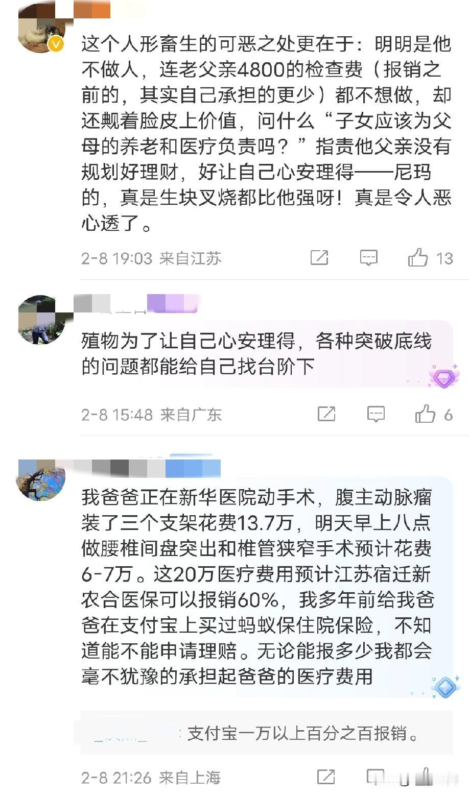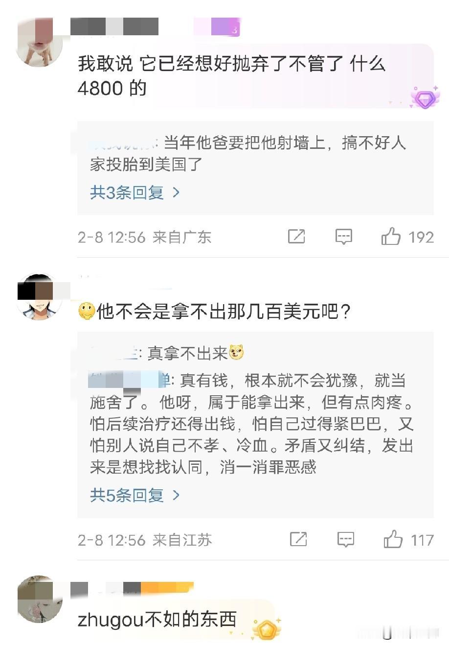 这个公知作家润到美国,自称人生赢家,然后国内父亲生病,需要4800元人民币,然后它在外网发文问它该不该给它的父母出这笔钱! 这些公知作家道德沦落到这种地步,连自己的亲爹生病,4800元人民币,不就是几百美元吗?还要问该不该出这笔钱,然后就这种作家,还整天说自己为底层说话,还整天要启蒙大众,还动不动就把民主自由文明道德挂嘴上,这种人最自私,最虚伪,连对待自己的父亲都如此绝情,你还能相信它们能给底层说话,美国也真是一块“文明”的地方,很多去到哪里的人,都变成这样了,我们经常听到某某大学教授或者高知把自己的几个子女都送到美国留学,都是博士,都留在美国工作,每每向别人提起这些都很自豪,很有优越感,最后自己依靠养老金在养老院养老,几个子女连回来都不回来,最后去世了,还是邻居或者曾经的学生赶来料理后事,子女一个都没有回来,跟这个公知作家一样,去到美国都变成自私自利,精致利己主义了,美国那块土地就是生产这样的人!