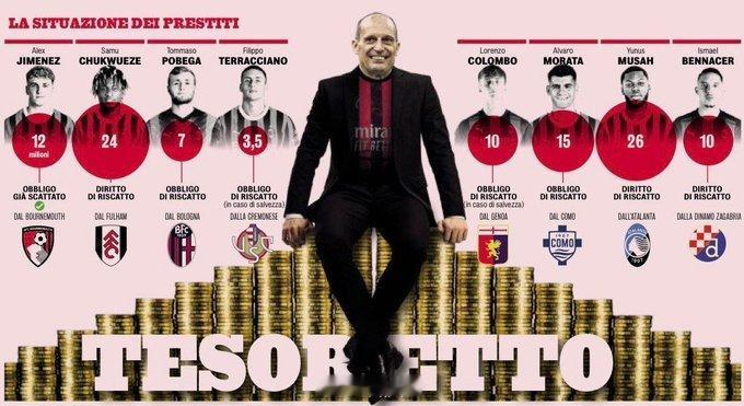 【夏窗预算充足】目前情况除了本纳赛尔和穆萨大概率回来,其他球员有的确定买断,有的根据表现几乎买断,这部分收入按照图片的价格来统计已经有7000万在手。