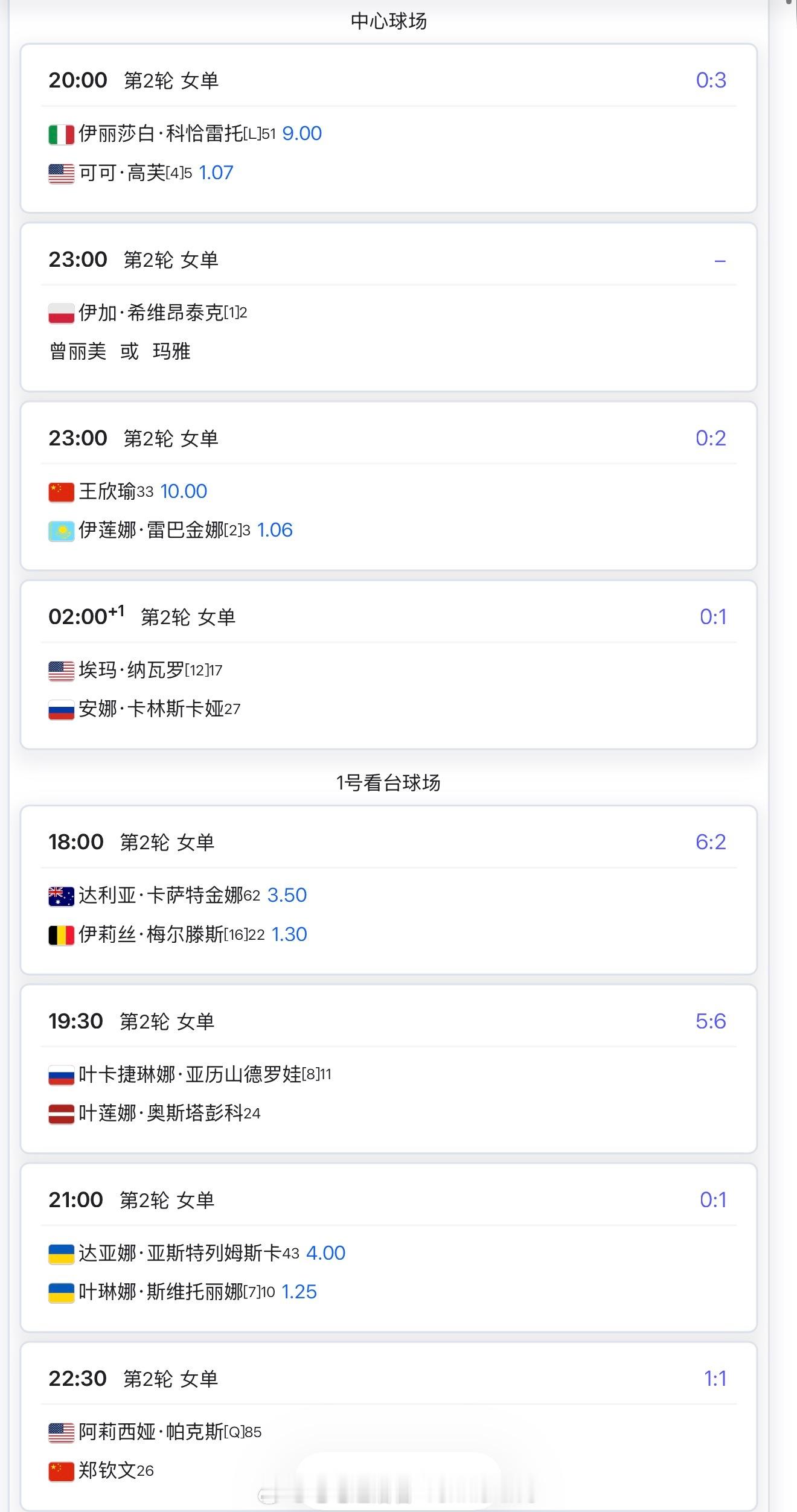 【今日比赛赛程+直播赛程】郑钦文王欣瑜出站20:00 奥胖 vs 压力娃21:3
