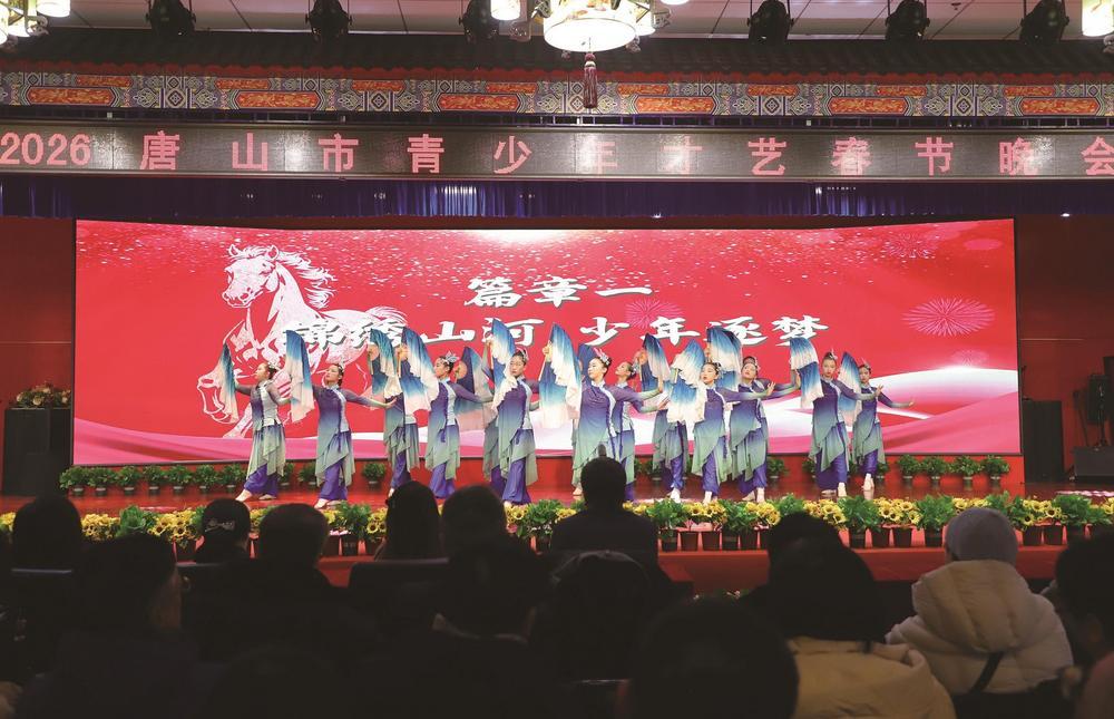 本报讯(记者赵欣实习生王艺霖、李航储)骏驰新岁,艺耀唐山。2月8日,2026唐山市青少年才艺春晚在唐山金名学校举行,现场气氛热烈,不时响起一阵阵掌声和欢呼声。150余名才艺青少年用歌舞、戏曲、朗诵、器乐、武术、非遗展演等多元形式,展现出新时代唐山青少年昂扬向上的精神风貌与家国情怀,为即将到来的新春佳节献上了一场兼具艺术水准与文化底蕴的视听盛宴。
