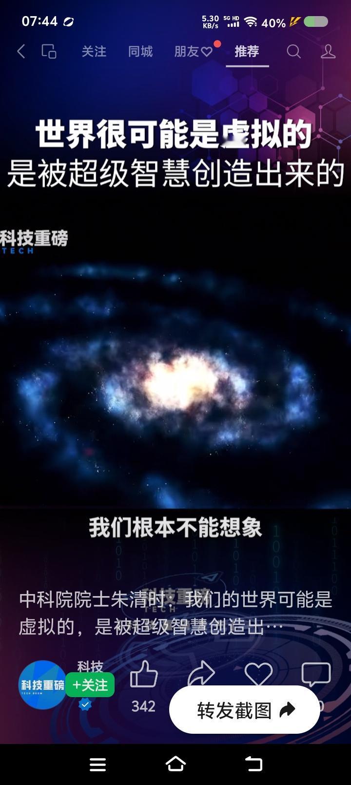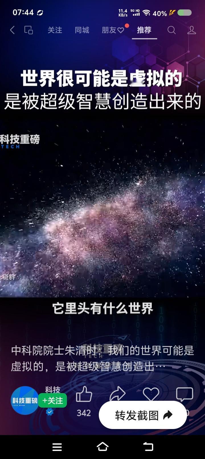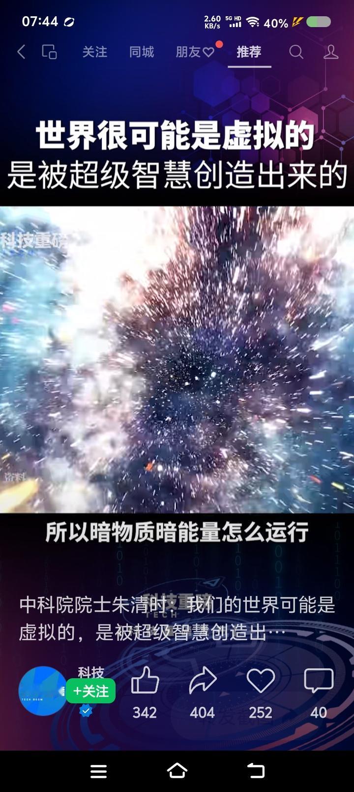 我们这物质世界,是虚拟出来的?—— 网上视频:有个专家说:“我们这物质世界,很可能是超级智慧在计算机上虚拟的。超级智慧是空的,不产生物质,它存在的形式,我们不能想象。宇宙中的95%的部分,是暗物质暗能量,它们里头是什么,怎么运行,智慧怎么样,我们不能想象。人身上有很多细菌,活得很好,它无法理解人体怎么样;人也一样,不要以为自己很伟大,它在地球上像细菌,宇宙有大智慧……” 点评: 寒假作业来了! 读上述材料,回答: 1、作者的观点是什么? 2、“超级智慧”,“暗物质暗能量”,是什么关系? 3、你认为物质世界是虚拟的么?结合看过的书,或影视,简要分析。
