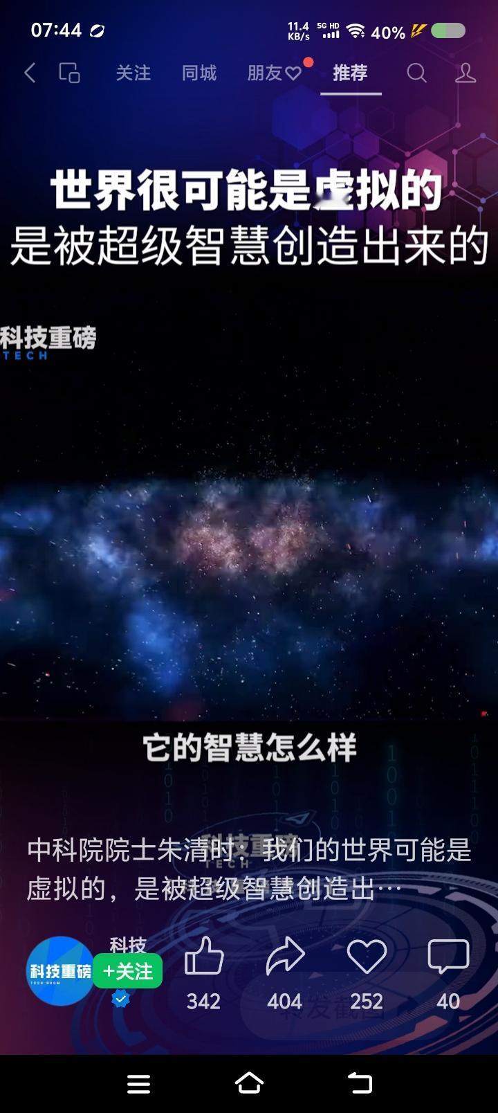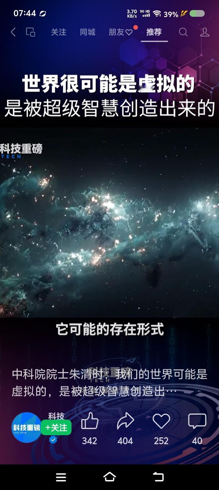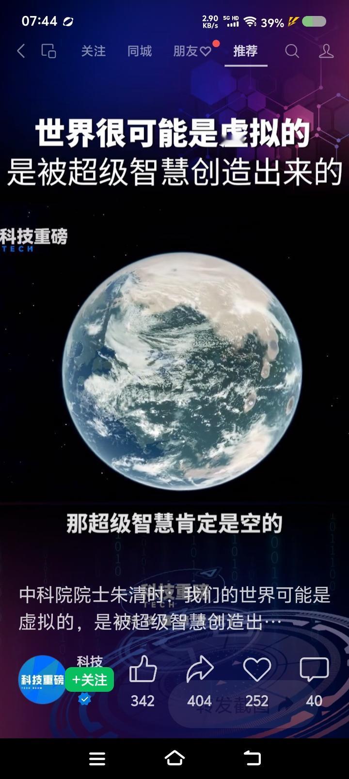 我们这物质世界,是虚拟出来的?—— 网上视频:有个专家说:“我们这物质世界,很可能是超级智慧在计算机上虚拟的。超级智慧是空的,不产生物质,它存在的形式,我们不能想象。宇宙中的95%的部分,是暗物质暗能量,它们里头是什么,怎么运行,智慧怎么样,我们不能想象。人身上有很多细菌,活得很好,它无法理解人体怎么样;人也一样,不要以为自己很伟大,它在地球上像细菌,宇宙有大智慧……” 点评: 寒假作业来了! 读上述材料,回答: 1、作者的观点是什么? 2、“超级智慧”,“暗物质暗能量”,是什么关系? 3、你认为物质世界是虚拟的么?结合看过的书,或影视,简要分析。