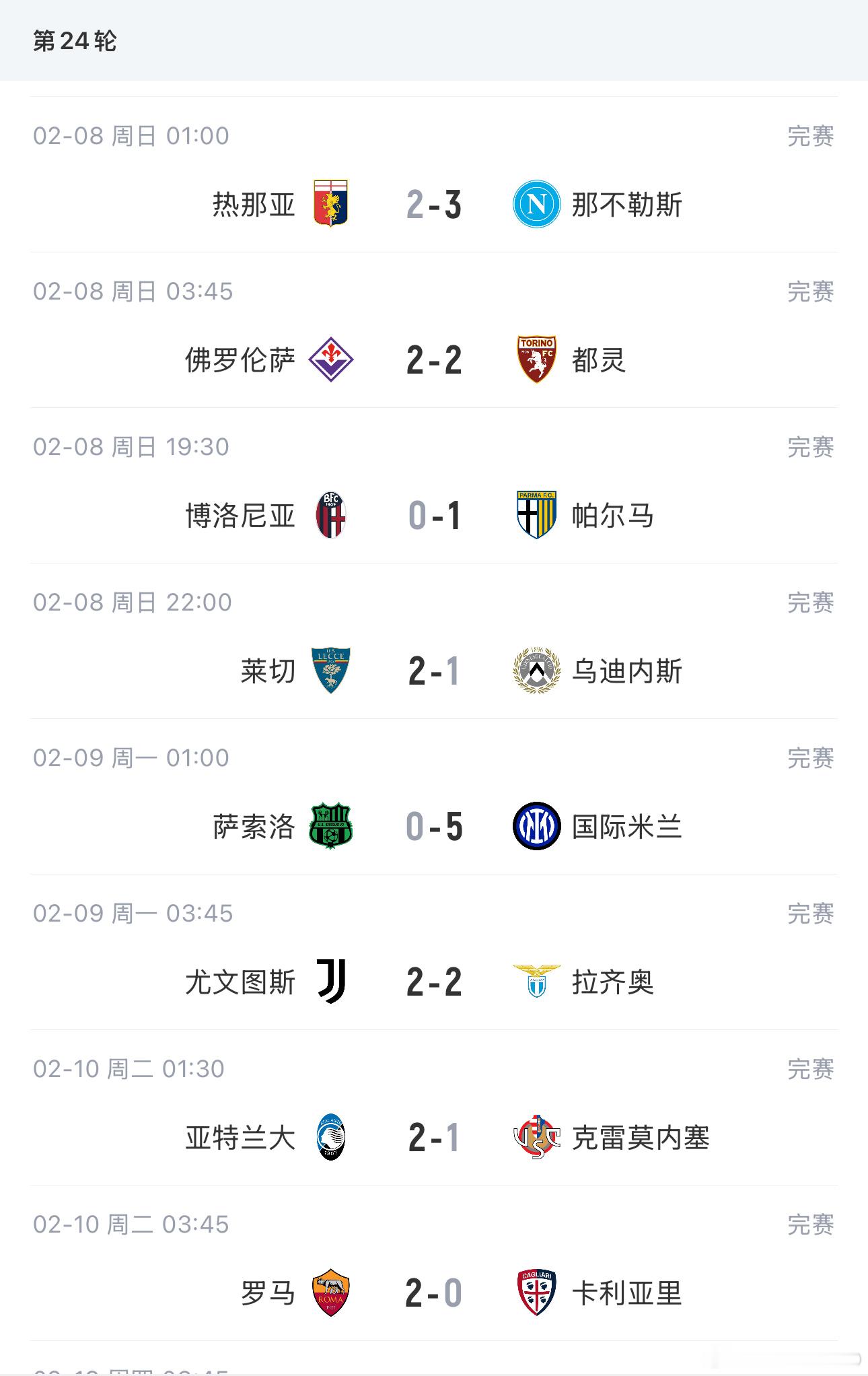 一觉醒来,罗马战胜卡利亚里后追平了你妇,亚特兰大也赢了之后持续保持追赶之势,周四