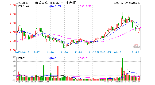 2月9日,集成电路ETF嘉实(562820)涨3.88%,成交额2366.45万元。当日份额减少400.00万份,最新份额为8013.60万份,近20个交易日份额增加3200.00万份。最新资产净值计算值为2.00亿元。