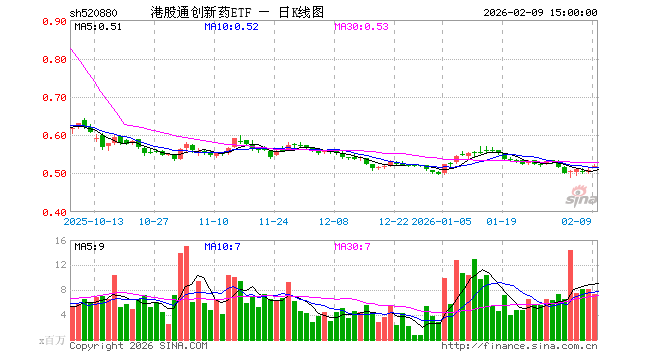 2月9日,港股通创新药ETF(520880)涨1.77%,成交额3.81亿元。当日份额减少6800.00万份,最新份额为46.90亿份,近20个交易日份额增加6.04亿份。最新资产净值计算值为24.46亿元。