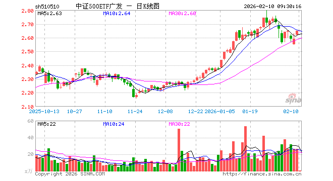 2月10日,中证500ETF广发(510510)开盘涨0.04%,报2.648元。中证500ETF广发(510510)重仓股方面,英维克开盘涨0.39%,信维通信跌0.79%,巨人网络涨0.29%,航天电子跌0.57%,中矿资源跌0.38%,中国卫星跌0.01%,先导智能跌0.46%,卧龙电驱涨0.00%,赤峰黄金跌0.22%,兴业银锡跌0.26%。