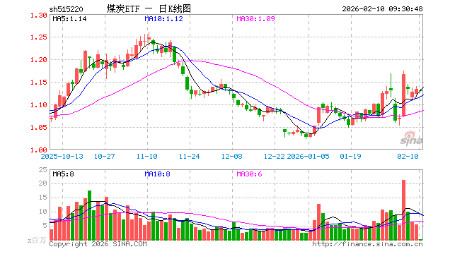 2月10日,煤炭ETF(515220)开盘跌0.26%,报1.131元。煤炭ETF(515220)重仓股方面,中国神华开盘涨0.00%,陕西煤业涨0.00%,兖矿能源涨0.94%,中煤能源跌0.28%,山西焦煤跌0.43%,华阳股份跌0.63%,美锦能源涨0.00%,潞安环能涨0.00%,淮北矿业涨0.24%,平煤股份涨0.12%。