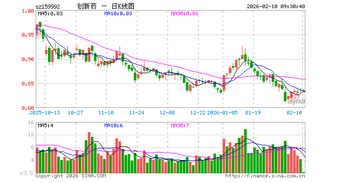 2月10日,创新药ETF(159992)开盘涨0.00%,报0.836元。创新药ETF(159992)重仓股方面,药明康德开盘跌0.01%,恒瑞医药涨0.02%,华东医药涨0.22%,复星医药涨0.19%,科伦药业涨0.00%,百济神州涨0.00%,长春高新跌0.07%,康龙化成跌0.07%,泰格医药涨0.00%,艾力斯涨0.16%。
