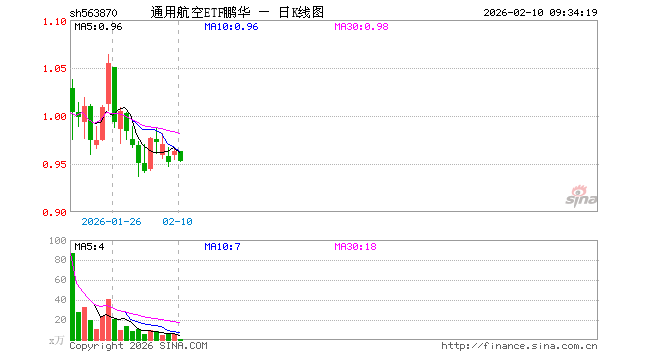 通用航空ETF鹏华(563870)业绩比较基准为中证通用航空主题指数收益率,管理人为鹏华基金管理有限公司,基金经理为钟成亮,成立(2025-12-31)以来回报为-3.67%,近一个月回报为-9.36%。