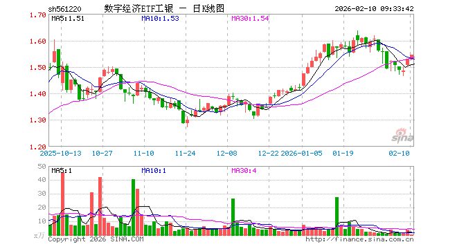 数字经济ETF工银(561220)业绩比较基准为中证诚通国企数字经济指数收益率,管理人为工银瑞信基金管理有限公司,基金经理为史宝珖,成立(2025-05-21)以来回报为52.89%,近一个月回报为-1.40%。