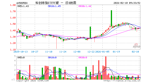 科创综指ETF兴银(589580)业绩比较基准为上证科创板综合价格指数收益率,管理人为兴银基金管理有限责任公司,基金经理为林学晨、李浩,成立(2025-05-27)以来回报为43.22%,近一个月回报为-0.73%。
