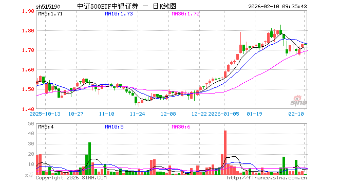中证500ETF中银证券(515190)业绩比较基准为中证500指数收益率,管理人为中银国际证券股份有限公司,基金经理为张艺敏、刘先政,成立(2020-04-30)以来回报为72.89%,近一个月回报为3.12%。