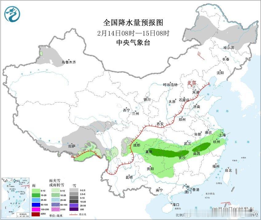 【雨雪】昨天到今晨,黄河以南出现了较大范围降水。湖南江西部分站点出现中雨,包揽了