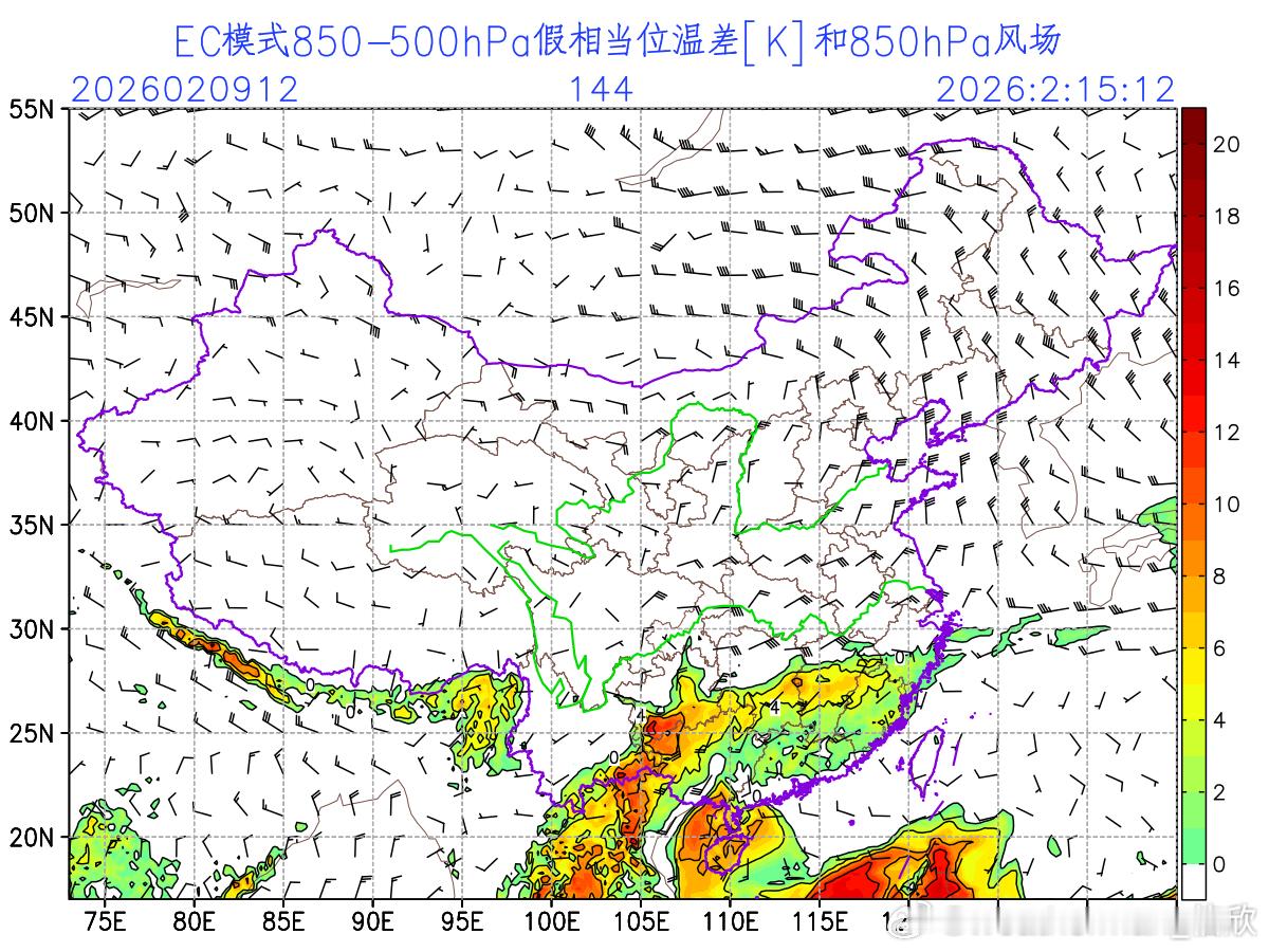 15日冷空气南下,冷暖空气交汇,转为阵地战,南方降雨的连续性更明显。而且14日-15日,假相当位温,850百帕与500百帕存在正的差值,意味着可能出现高架雷暴,贵州广西湖南江西浙江福建等地,降雨可能会伴随雷电。