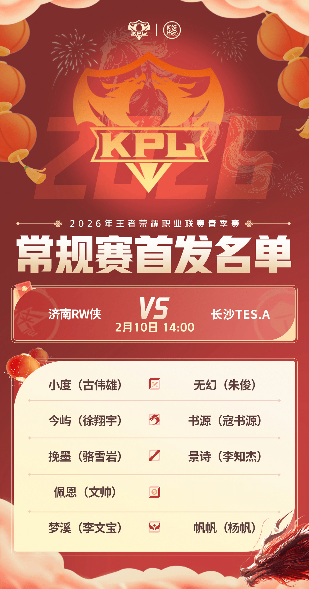 2026KPL春季赛常规赛第二轮W2D1[首发名单]送达!
