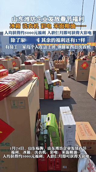 年底了,许多公司都在发年货。山东潍坊一家小厂火了,不是因为发了多贵的东西,而是因为年货太实在、太全乎,甚至有些员工直接叫来货拉拉往家拿,网友:这也太接地气了 潍坊风很硬,吹得人脸发麻,可有个小工厂门口却热闹得不行,像突然多出来一段“晚高峰”。 厂门口不是有人拉横幅讨薪,也不是搬设备关门那种冷清场面,而是一辆接一辆的货拉拉和私家车挤在一起,车灯一闪一闪,门口几乎被堵死。 附近路过的人,一开始还以为出事了,裹着羽绒服凑近看,结果看清后全笑出来:原来是员工领年货,把车都装不下了,临时叫车来拉。 还有人干脆把亲戚朋友也喊来了,七大姑八大姨的车跟着来帮忙,场面一下就变得特别生活化——不像在上班,倒像赶大集。 这家厂子不算大,2020年才建,员工也就四十来号人,按很多人的经验,小厂年货通常就是意思一下,最多发点米面油,或者象征性一箱礼品。 可这次老板姜先生,把年货预算定到了人均3000元,而且不是发购物卡,也不是发一条短信转账通知,而是直接把钱变成了“能搬得动、也能砸出声”的实物。 院子里摆出来的东西,一眼望过去就有压力感,堆得很实在,最显眼的是洗衣机,还是那种正常家用款,不是迷你机,也不是“摆着好看”的赠品。 洗衣机旁边还有刚分割好的猪肉、本地压榨的花生油、大米、坚果糖果这些年货常见物资,另外还给女员工配了面膜、化妆品之类的日用品。 加起来一共十五样,基本覆盖了“过年桌上能用的、家里能用的、日常能用的”。 也正因为东西太实在,才把门口搞堵了,很多员工本来就开轿车来上班,后备箱容量有限,一台洗衣机往里一放,空间就差不多满了。 剩下的猪肉、米面油再往里塞,根本不够用,有人当场试着把后备箱盖合上,怎么都关不严,几个人一起按着也不行,最后只能改主意:要么打电话喊家里人开车来接应,要么直接用手机下单叫货拉拉。 现场最有“笑点”的地方,是分发活禽的时候,年货里还有散养的大公鸡,平时在办公室、车间里干活的年轻人,遇到鸡这种“会动的年货”反而不会下手。 鸡一扑腾、翅膀一扇、叫两声,几个大男人愣在那儿,有的伸手又缩回去,有的站旁边看着不敢抓。 旁边的人笑得不行,但那种笑不是嘲讽,更像是久违的热闹:大家都在忙着把东西装走,嘴里互相打趣,院子里一股过年的烟火气。 很多人会问:既然人均3000元,直接发现金不是更省事吗?员工想买啥买啥,老板也不用张罗采购、运输、发放。 但姜先生这种做法,恰恰是把“实惠”和“体面”一起考虑进去了,现金发下去很快就没了声响:有人存起来,有人还贷款,有人直接拿去补日常开销,过几天就记不清这笔钱,到底给自己带来了什么“具体变化”。 实物不一样,实物是看得见的,洗衣机搬回家,家里人一眼就知道“这是单位发的”;猪肉、油、米摆在厨房里,亲戚串门也看得到;活鸡拎回村里,路上都能引来一句“你们厂发这么多?” 这种“被看见”的感觉,对很多普通员工来说,比单纯的金额更有冲击力。 而且在小城市、县城或农村出身的人群里,这种冲击,往往会直接转化成一种很具体的满足感:不是空话,是“我在外头干得还行,单位待遇不差”。 邻居一句羡慕、家人一句夸奖,有时候确实能让人心里更踏实,也更愿意把这份工作当成长期的依靠。 从管理角度看,这种年货发法也更容易“留人”,不是靠喊口号,也不是靠画未来,而是让员工在年关这个最敏感的时间点,实实在在感觉到:老板愿意把利润拿出来分一部分,愿意花心思让大家过个好年。 你可以说这是朴素,也可以说是懂人情,但效果通常很直接——尤其当员工因为东西太多,不得不叫货拉拉、后备箱怎么也关不上时,那种“这厂子对我不薄”的感受,会变得特别具体。 所以门口那场堵车,看起来是个热闹的插曲,本质上是一次很直白的信号:在很多人都习惯用“形式”和“话术”交差的时代,有人选择用真正的物资把福利做实。 大家点赞的并不只是洗衣机、猪肉和花生油,而是那种确定感——你辛苦干一年,至少能换来一车能带回家的东西。 信源:《2月5日报道,山东潍坊,企业老板回应年货发大公鸡 :主打一个实用,每人配齐15件年货,总价值3000元。》九派新闻