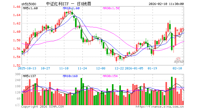 2月10日,截止午间收盘,中证红利ETF(515080)涨0.00%,报1.607元,成交额6233.45万元。中证红利ETF(515080)重仓股方面,中远海控截止午盘跌0.28%,广汇能源跌1.09%,中谷物流涨0.19%,山煤国际涨0.00%,平煤股份涨0.83%,潞安环能涨0.53%,鄂尔多斯跌2.17%,山西焦煤涨0.43%,陕西煤业涨0.88%,西部矿业跌0.56%。