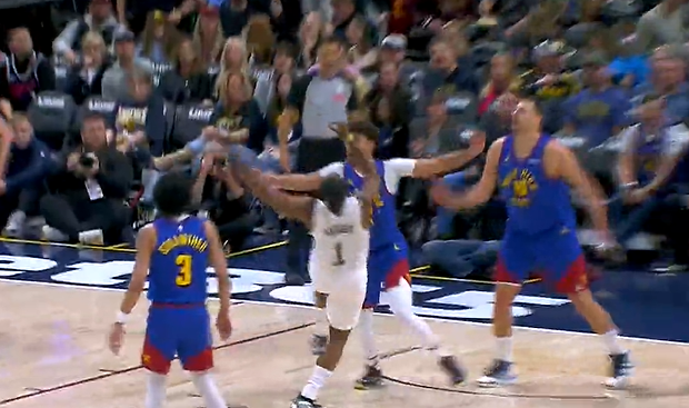 哈登强打约翰逊抛投打成2+1,同时让约翰逊领到第4犯