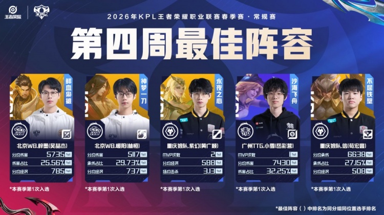 2026KPL春季赛[常规赛第四周最佳阵容]公布!