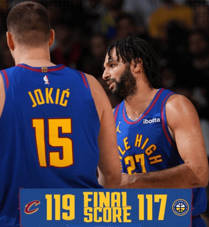 掘金官方发布终场海报:主场不敌骑士,战绩来到34胜20负