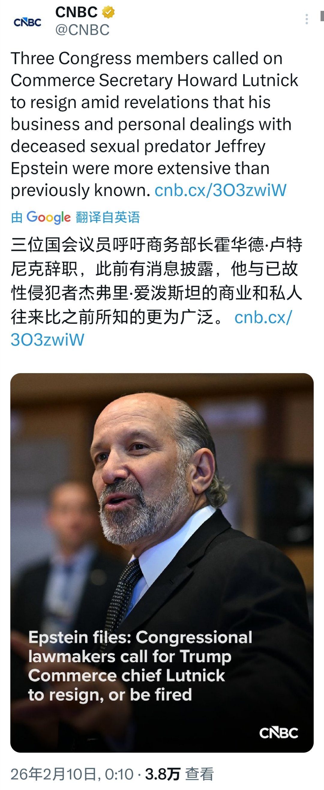 美国商务部长也上过爱泼斯坦的岛随着爱泼斯坦案文件的公布,美国现任商务部长卢霍华德·卢特尼克因涉嫌隐瞒与爱泼斯坦的交往被要求辞职。但被白宫拒绝。
