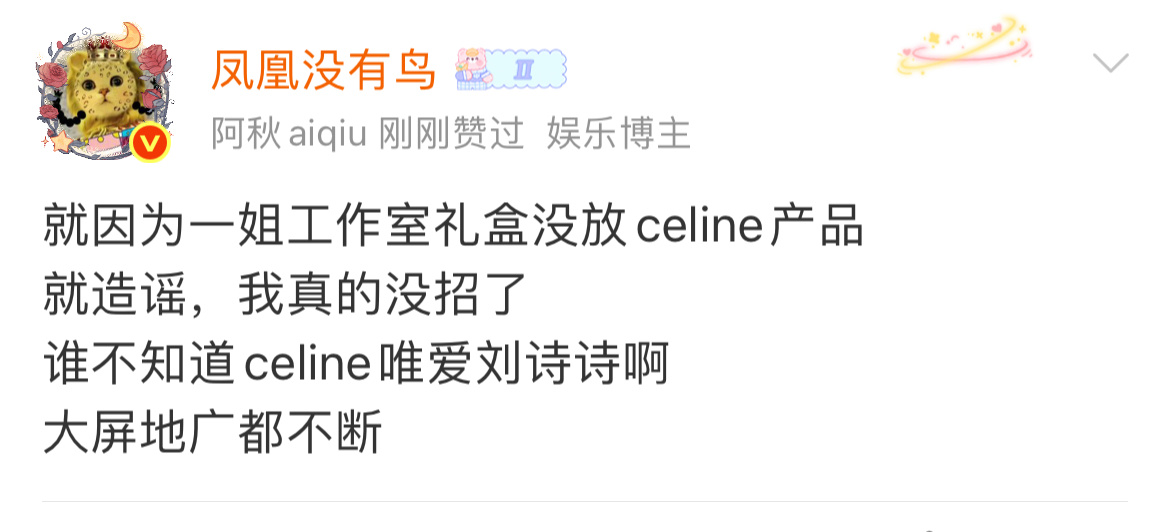 刘诗诗工作室也没放欧米茄,qeelin呀,怎么难道一定要让一姐送高奢? 目测一姐