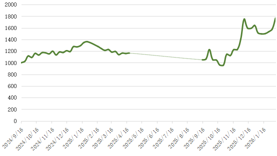 新华指数监测显示,截至2026年2月9日,新华·隰县玉露香梨产地收购价格指数报2051.61点,较前一期(2026年2月2日,下同)上涨116.13点,涨幅6%;较基期(2024年9月16日)上涨1051.61点,涨幅105.16%。