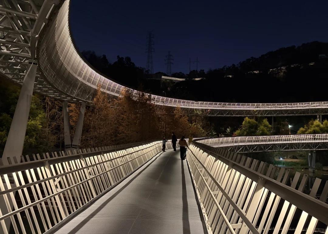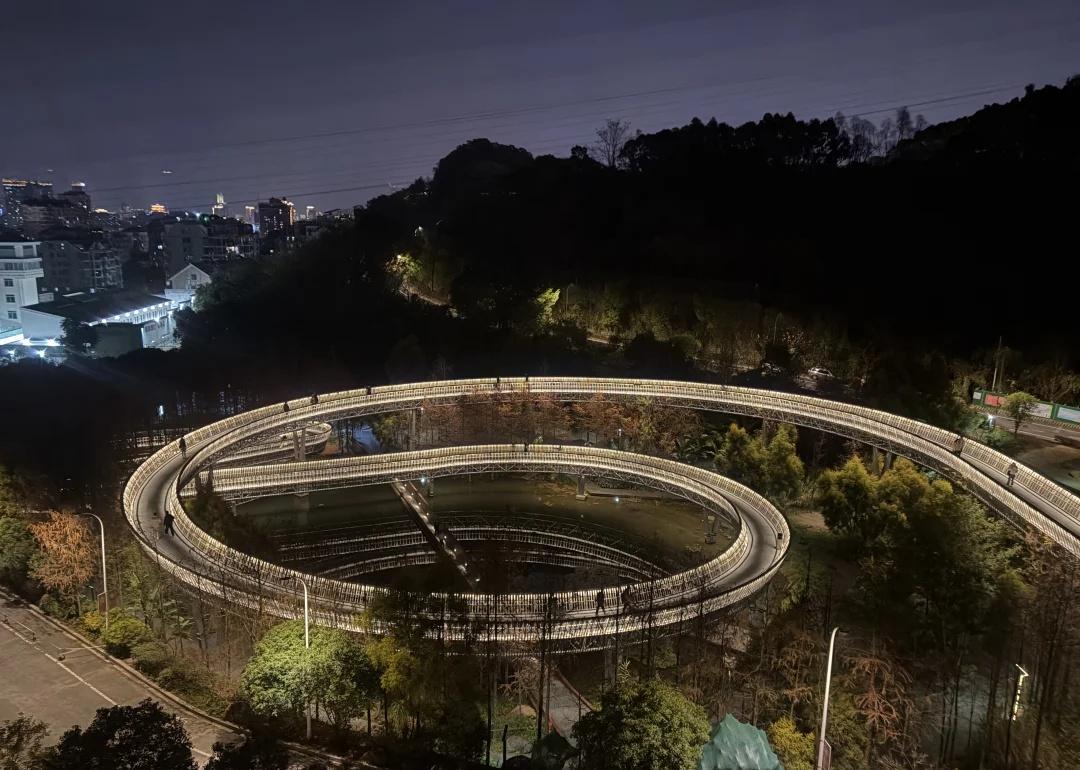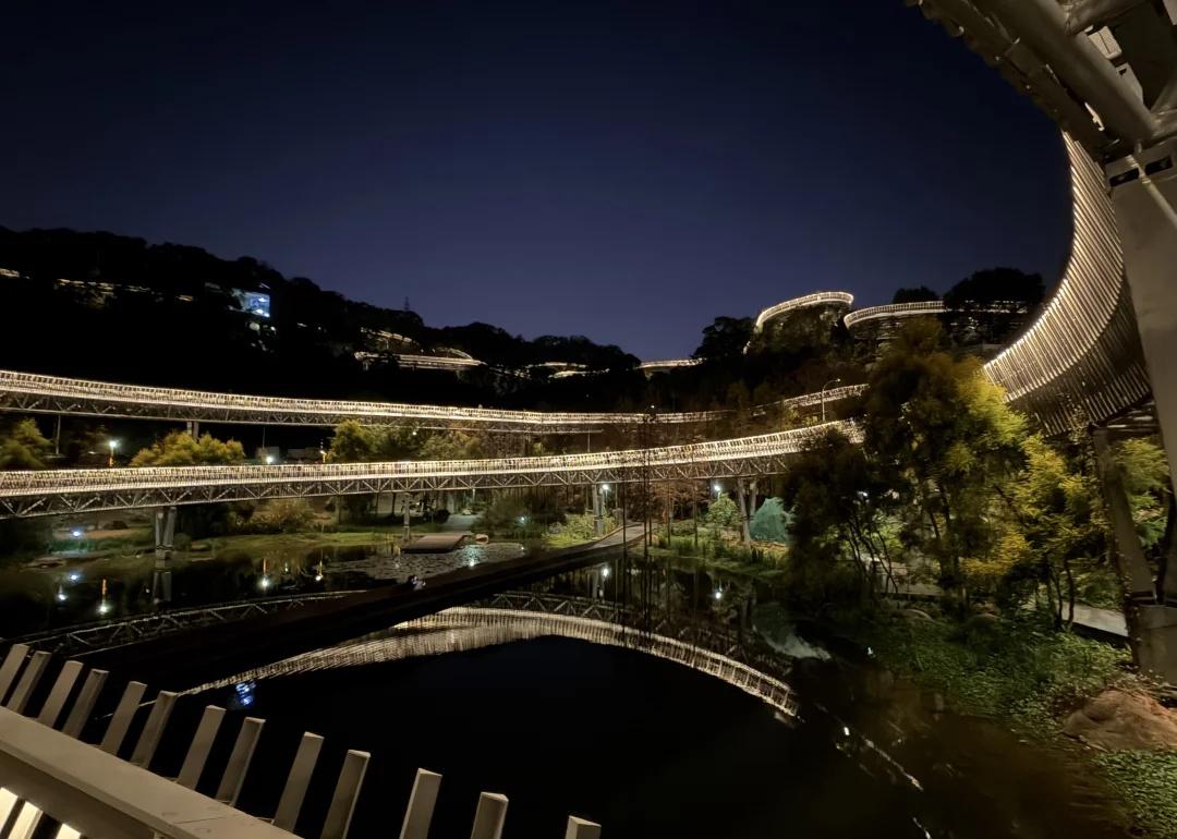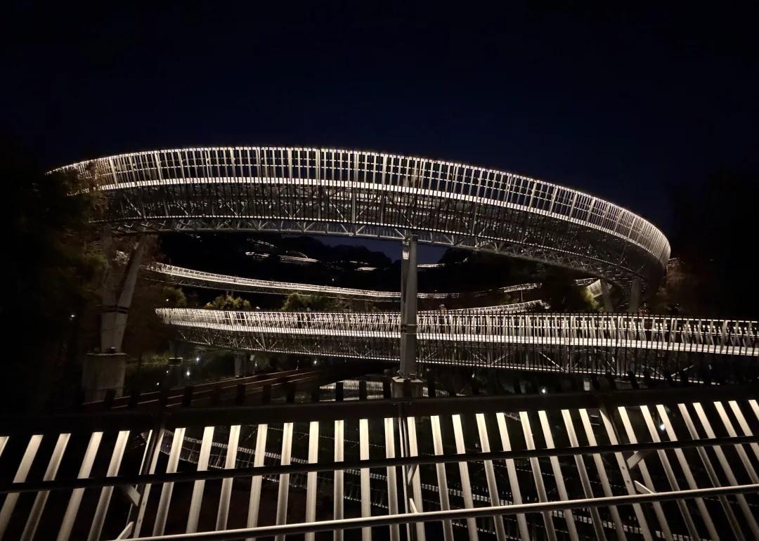 福道3号口进3号出口出,懒人攻略 去福道之前,查了下很多人推荐3号口进,5号口出,但是要走2个小时。这两天逛马尾船政历史文化馆,上下杭,三坊七巷,烟台山,已经很累,吃不消了。所以选择了个适合懒人的方案,就是3号口进3号口出(进出口不同路),半小时走完最漂亮路段[大笑] 从图2的三号口进去,往前走左侧的地方进去,会看到图3,福道上卫生间少,建议先上洗手间,然后开始走福道,福道是平坦的旋转道,非常出片。 (不要一直看脚下,要不腿会发软[偷笑]福道上有休息椅,也有紧急按钮) 向前走个15分钟左右,可以看到图10的黄色房子,赶时间的,可以从这个房子下楼,直接回去。 继续向前走5分钟左右,会看到图13的指示牌,从这里可以直接下去走到出口,具体见图14。 但是我建议看到指示牌之后可以再往前走一段,向前有个高处可以俯瞰,非常漂亮。见图1。 看完之后再回来,从图13的出口下来就行了。 福道晚上去还是很漂亮的(开灯时间17:30-22:00), 值得体验,推荐!!夜游的快乐我知道 城市探险