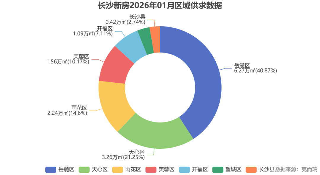 这意味着,购房者不再满足于“有房住”,而是追求“住得好”。岳麓区新房成交主力集中在建面130㎡以上大户型,占比高达67%。即使在1月整体市场疲软的背景下,洋湖、梅溪湖等改善片区仍逆势“爆单”。