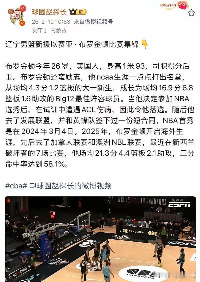 老刘家这是寻思过味了?终于知道现在CBA就是玩外援,外援不行你连季后赛都进不去。外援厉害拿总冠军也有可能。 今天小年,辽宁男篮终于有了好消息,布罗金顿这个澳大利亚联赛外援将在春节后抵达辽宁队,布罗金顿也是辽宁队本赛季的第七名外援,今年26岁,身高193,属于得分后卫,在澳大利亚联赛场均可以得到15.8分,从得分上看与哈维差不多,也具备三分投射能力。 辽宁队签下布罗金顿后,球队将是三个小后卫外援,加上莫兰德一个大外援,从外援配置上还是不太合理,内线的攻击力不强,对手就会放心的去夹击外线,导致外线投篮压力增大。 不过如果辽宁队本赛季就是为了进入季后赛,那么这个阵容也算够用了。