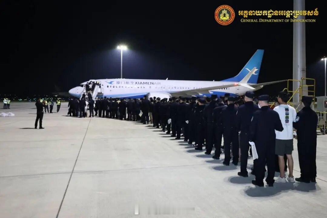 他们在柬埔寨徳崇机场乘坐厦门航空包机被遣返回国。这是柬方连续第三天遣返中国电诈嫌疑人,2月7日晚遣返110人,2月8日晚遣返312人。三天累计已有741名中国人被遣送回国。