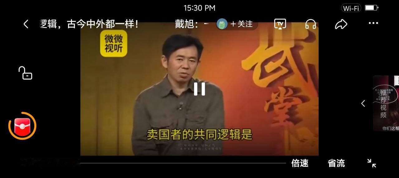 戴旭说卖国者的逻辑—— 节目里,戴旭说:“公元前238年,嬴政亲政,向魏缭子请教如何灭六国,对方说:‘愿大王勿爱财物,赂其豪臣,以乱其谋,不过三十万金,则诸侯可尽。’嬴政听从了这番话,六国先后灭亡。古今中外一切卖国者的共同逻辑是,个人利益远比国家利益重要,这些人眼里,没有国家概念。” 点评: 六国灭亡,原因很多,戴老师这里强调了豪臣即有实权有影响力的大臣的失节行为。 现在不一样吗?多少代理人!别说大鱼了,你看网上多少小鱼臭虾大小殖子!