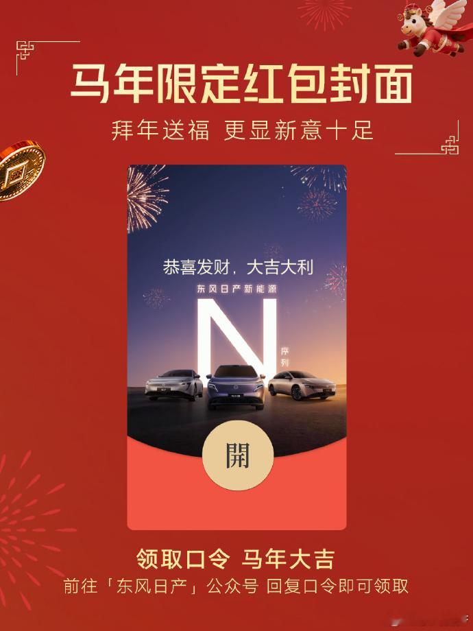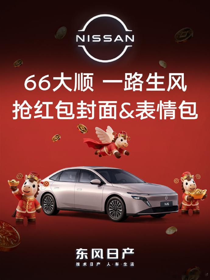 新年开大紫大红大N6春运堵车也能轻松惬意,东风日产新能源N6/N7/NX8空间大、大屏追剧,陪你舒适出行。新春还推出红包封面、表情包等福利,陪你辞旧迎新。第一波春运大军已堵在路上东风日产新能源N序列 尽享新春东风日产N6