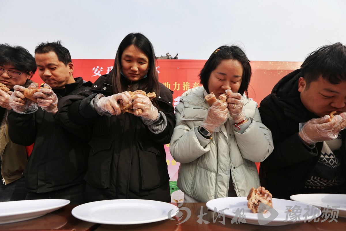 2月10日,农历小年,在千年古镇周口市商水县邓城镇,第十一届炸油条大赛暨“寻味邓城”新春美食文化节拉开帷幕。活动现场,不仅有切磋技艺的油条比赛,还有趣味十足的啃猪蹄大赛,两场比赛把浓郁的新春年味儿送到了乡亲们身边。