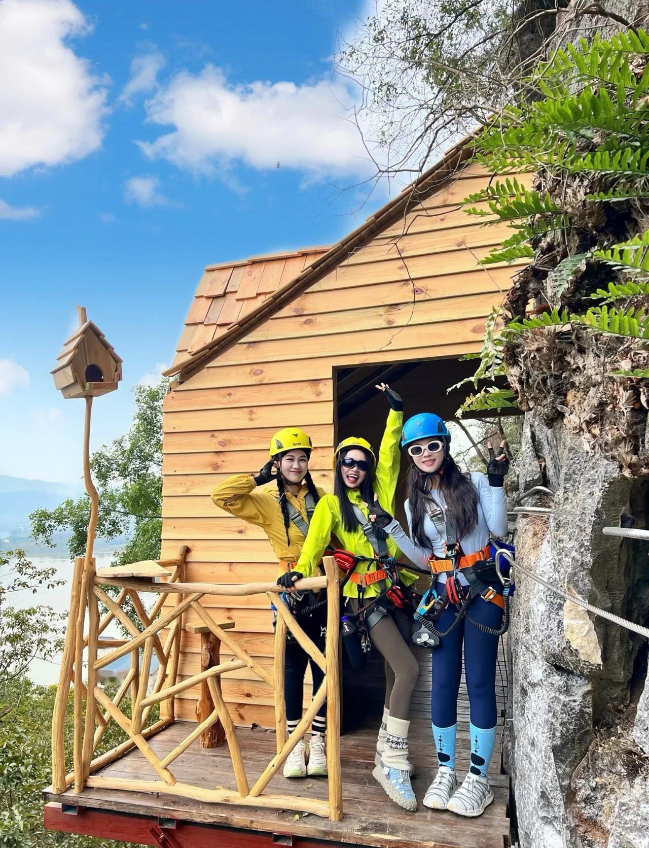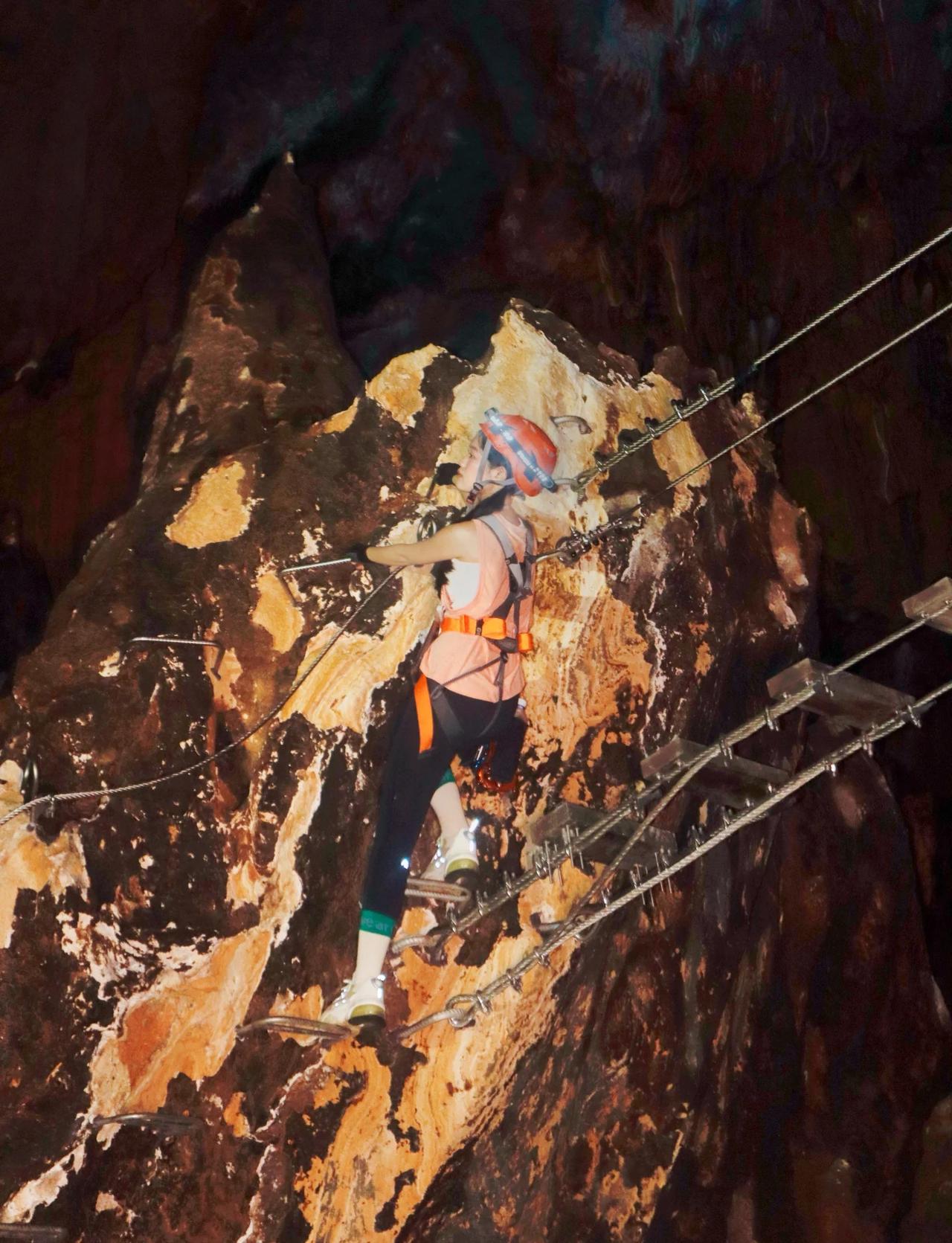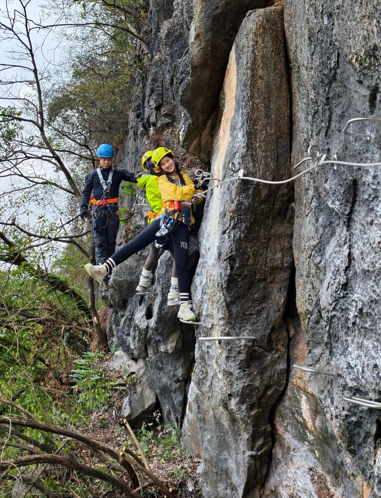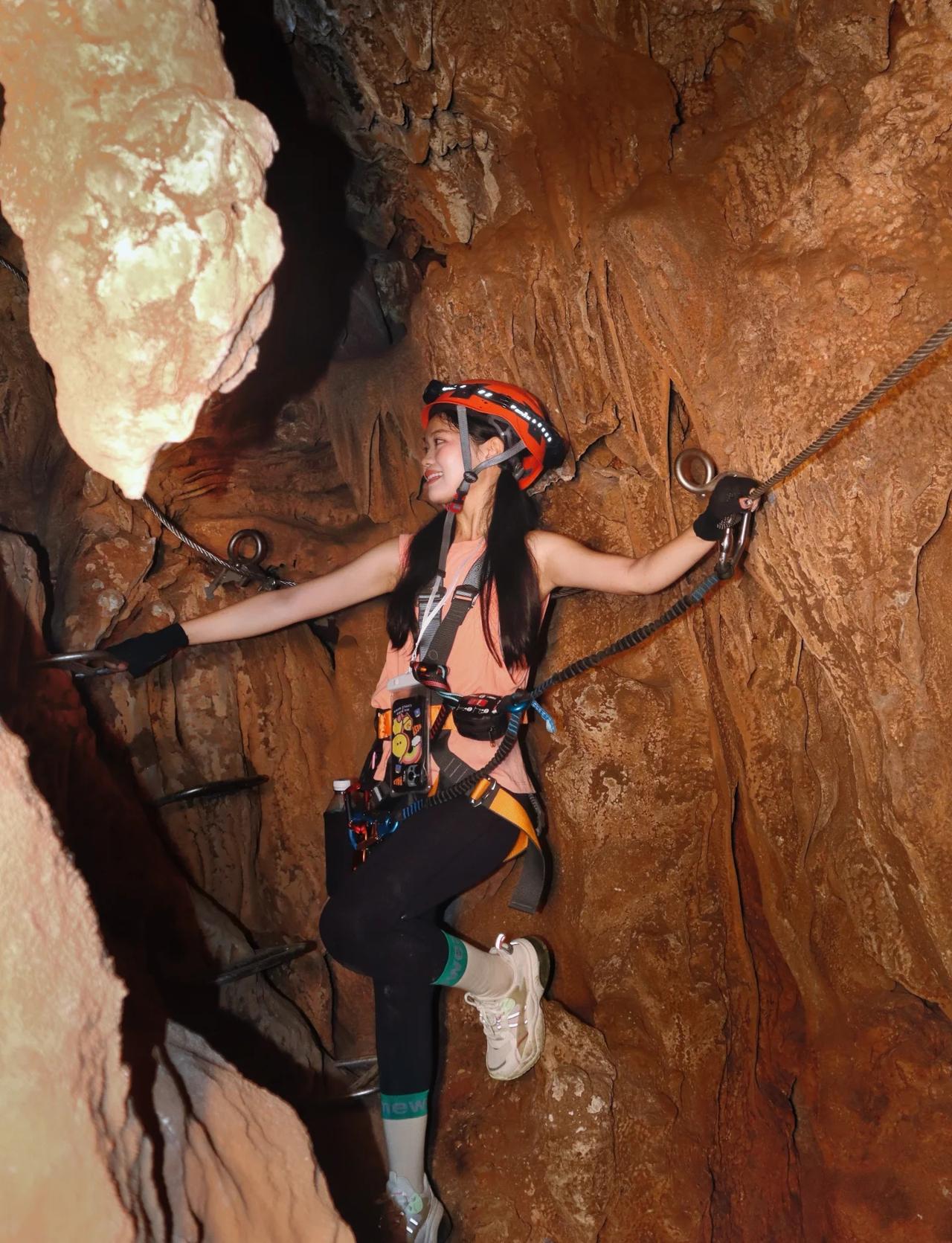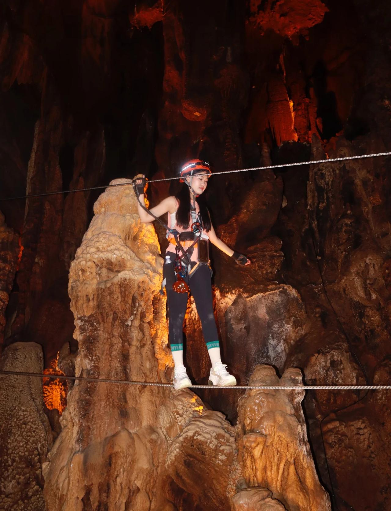 挑战悬壁攀岩➕溶洞飞拉达🧗🏻♀️深圳周边游 本地人才知道的小众景点 和小伙伴深圳自驾2.5小时,挖到宝了!! 📍清远英德宝晶宫旅游景区 ✔️广东首个洞穴➕悬壁飞拉达双线路 ✔️全程520米+400米每一步都在心跳上🤩 ✔️两条路线有不一样的玩法 · 1️⃣400米悬壁飞拉达(图1-8) ▪️这条路线全程3小时左右 和普通户外徒步完全不同 穿好专业安全带+头盔 教练会耐心讲解安全要点 前面是闯关模式(小朋友也可以玩) 闯到悬崖脚下开始攀爬模式🧗🏻♀️(小朋友别玩) 攀爬的每一步都是在挑战全新的自己💪🏻 在悬崖边上还有一个自助咖啡屋🥤(免费) 这一关还有滑索 第一次尝试😎 对于女生来说整个路线难度系数⭐️⭐️⭐️⭐️⭐️ · 2️⃣520米溶洞飞拉达🧗🏻♀️(图9-18) ▪️这条路线挑战时间2-3小时 里面都是闯关模式了 刚开始进溶洞还觉得暗 打开头灯瞬间被震撼到 钟乳石像凝固的瀑布挂在岩壁上 伸手就能摸到地质纹路,脚下是悬空的钢铁栈道 520米线路分地面行进和空中行走两部分 里面的溶洞爬起来可不比悬壁上轻松😌 对我来说整个路线难度系数⭐️⭐️⭐️⚡️ · ✔️两条路线都很好玩 是不一样的体验 新手建议一天玩一个路线就好了 真的比普通徒步有意思太多了! 不用专业攀岩经验,有颗爱玩的心就能上 · 关于交通 🚗导航「清远英德宝晶宫旅游景区」 深圳出发走广连高速→英德出口,全程2.5-3小时 景区停车场充足,不用担心停车问题 🚄高铁坐到英德站 打车到景区(15分钟左右就到了) 或者乘坐公交车203 · 🫶尊敬的审核员,此次为我个人的真实体验,有做好安全措施,全程在专业人士指导下进行的! 深圳周末去哪儿 深圳周边游 清远小众地 户外徒步 宝晶宫飞拉达 洞穴探险 广东首个溶洞飞拉达 令人难忘的景点 周边游攻略 自驾游 解压好去处 周末出逃计划 徒步路线推荐 年轻人旅游 逃离城市计划 避暑胜地 冬季旅游 英德旅游 清远旅游 广东周边游 清远宝晶宫 宝晶宫旅游景区 宝晶宫飞拉达 洞穴飞拉达