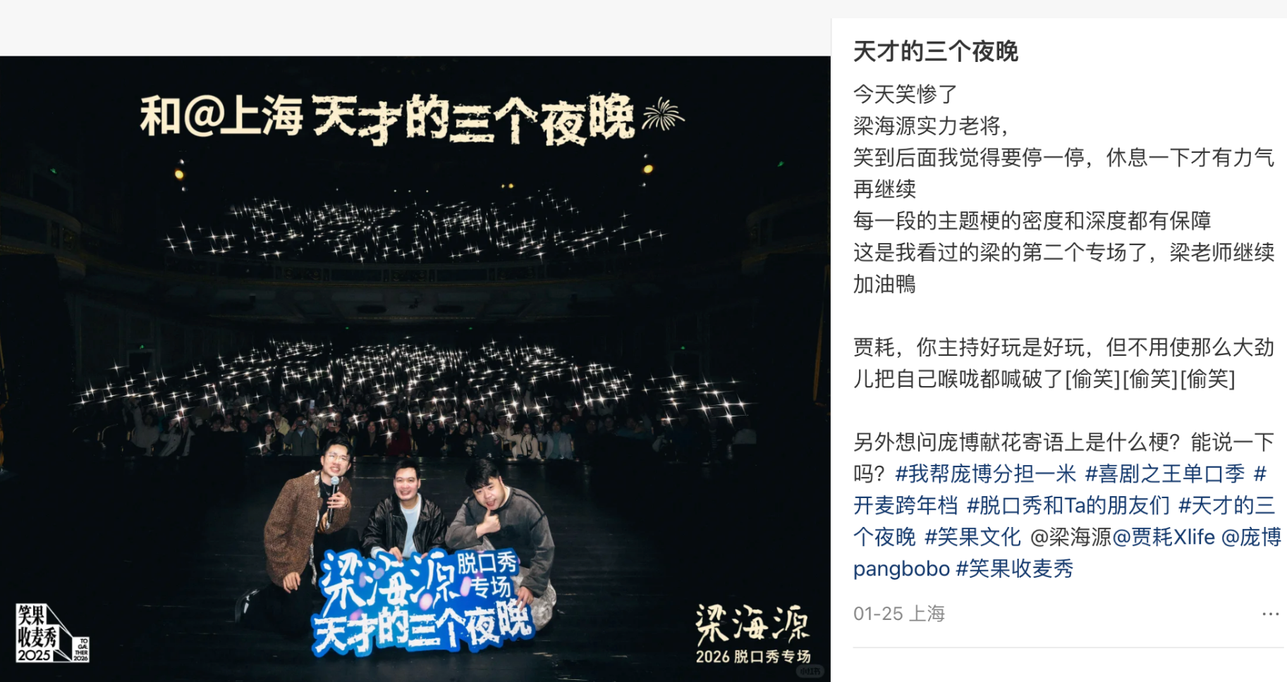 “2026年,我们还会继续更新内容、制作和体验,优化为观众、为社会服务的核心逻辑,期待能够为大家带来更好的演出、更多的笑声。”专场制作人赵双治说。